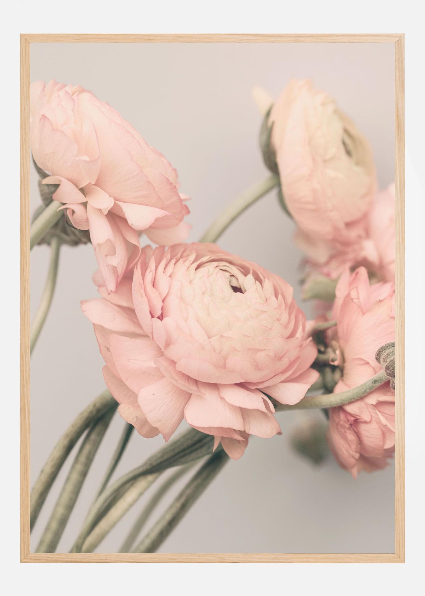 Denna eleganta poster fångar skönheten i en samling ranunkler, vars mjuka, rosa nyanser erbjuder en tidlös charm. De delikata blommorna böjer sig elegant, vilket ger en känsla av rörelse och liv till motivet. Perfekt för att tillföra en känsla av lugn och naturlig skönhet till ditt hem, denna affisch passar utmärkt i både moderna och traditionella inredningar.