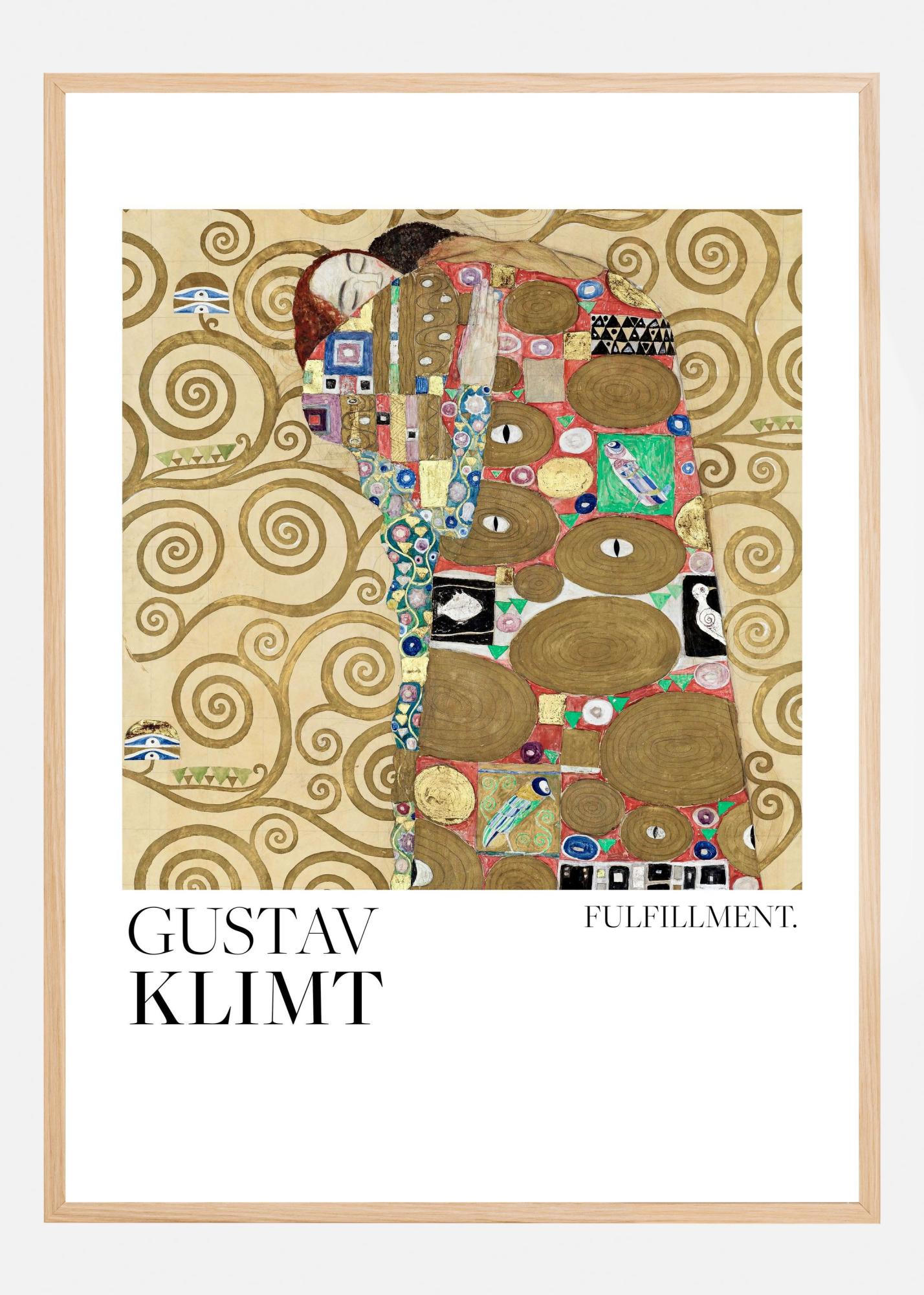 Denna poster fångar det ikoniska motivet "Fulfillment" av Gustav Klimt, känt för sin rika symbolik och detaljerade ornamentik. Postern visar en omslingrande omfamning, karaktäristisk för Klimts guldinspirerade period, där både abstrakta och figurativa former förenas i en harmonisk komposition. Detta print är perfekt för den som vill addera en touch av konsthistoria och djup till sitt hem eller kontor.