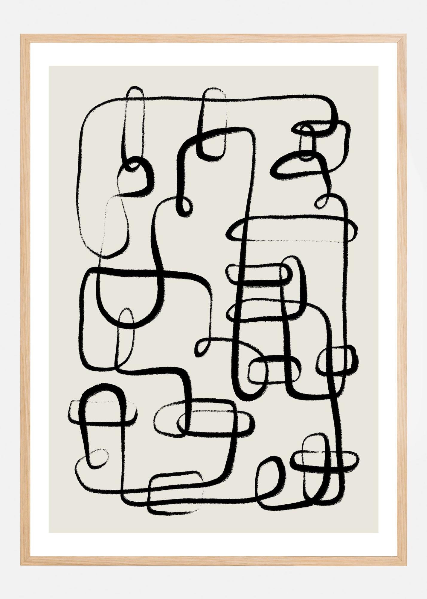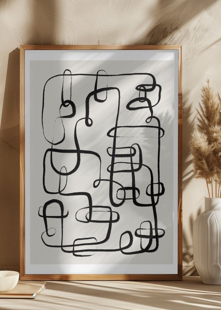 Affischen kombinerar enkelhet med elegans, vilket gör den lätt att matcha med olika inredningsstilar. Den ljusgrå bakgrunden framhäver de svarta linjerna på ett sätt som skapar ett djup och en konstnärlig touch. Perfekt för dig som söker en modern print att pryda din vägg med.