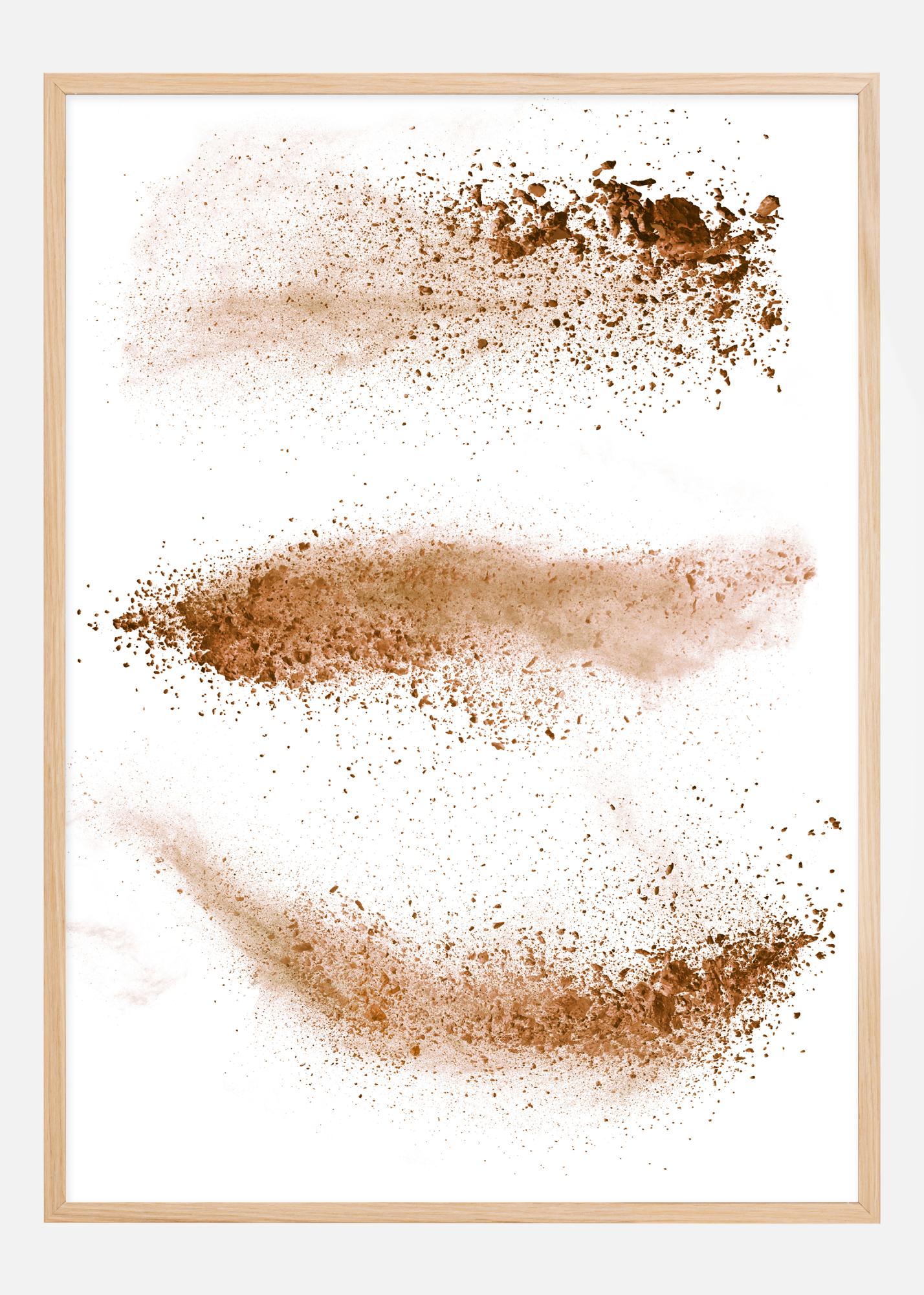 Denna abstrakta poster fångar ögat med sina svepande gyllene linjer och spridda pigment mot en ren vit bakgrund. Designen är öppen för tolkning och erbjuder ett dynamiskt visuellt intryck som kan spegla betraktarens egna känslor och tankar. Den abstrakta naturen av detta print ger det en universell dragningskraft, och de rika gyllene och bruna nyanserna förmedlar en känsla av lyx och sofistikering.