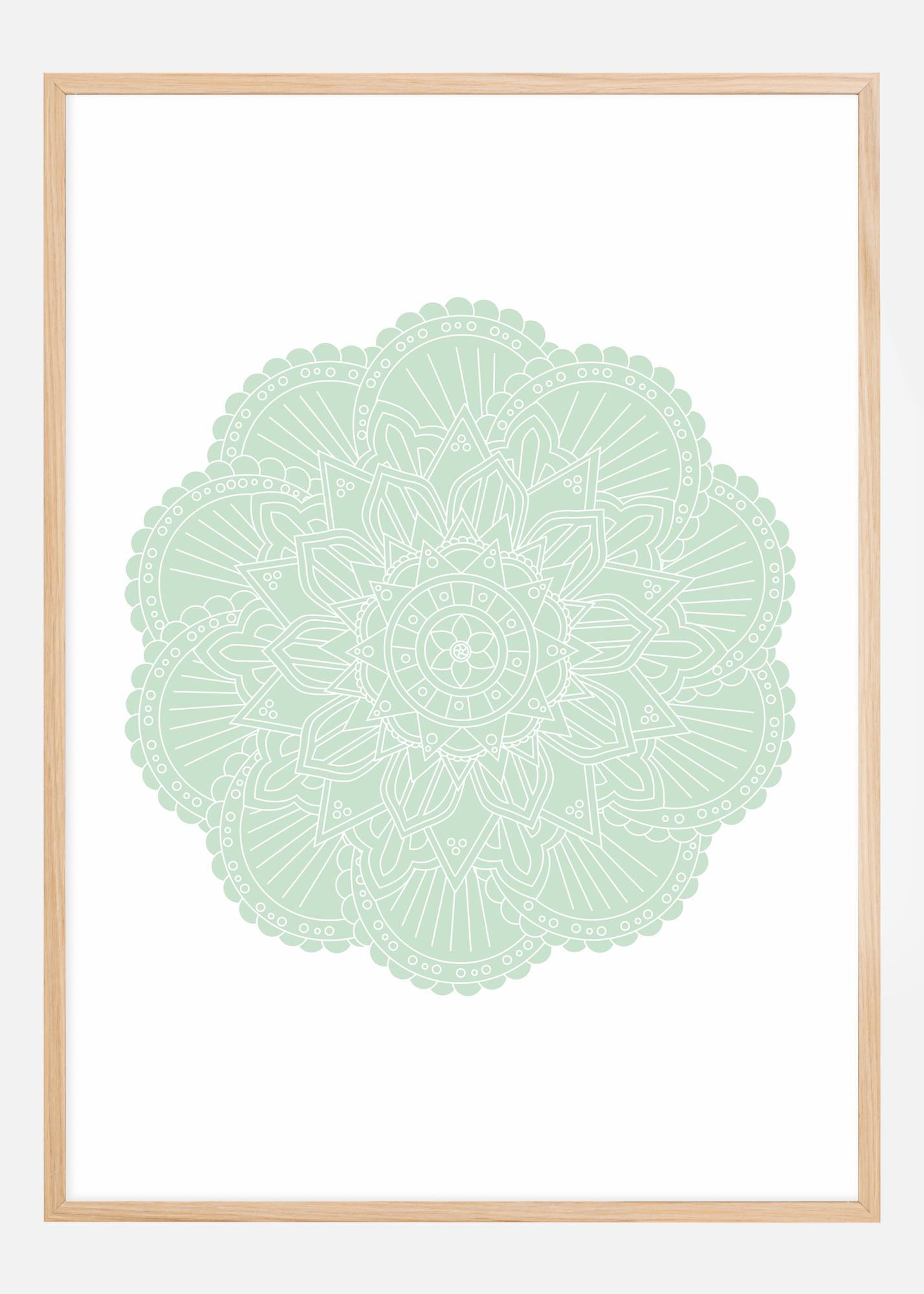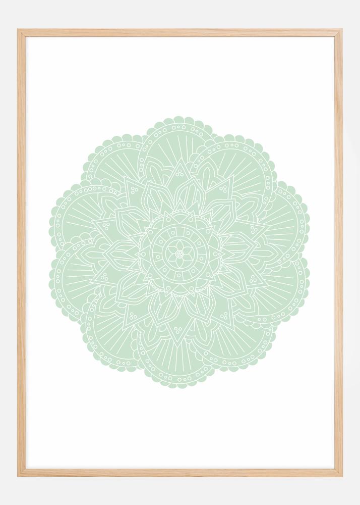 Denna poster framställer en symmetrisk mandala i avslappnande gröna nyanser, en bild som både är visuellt tilltalande och symboliskt rik. Mandalan, känd för sin användning i meditation och avslappning, erbjuder ett intrikat mönster som inbjuder ögat att utforska och sinnet att vandra. De mjuka tonerna bidrar till en känsla av balans och harmoni, vilket gör detta konstverk till en perfekt inramning för kontemplation och lugn.