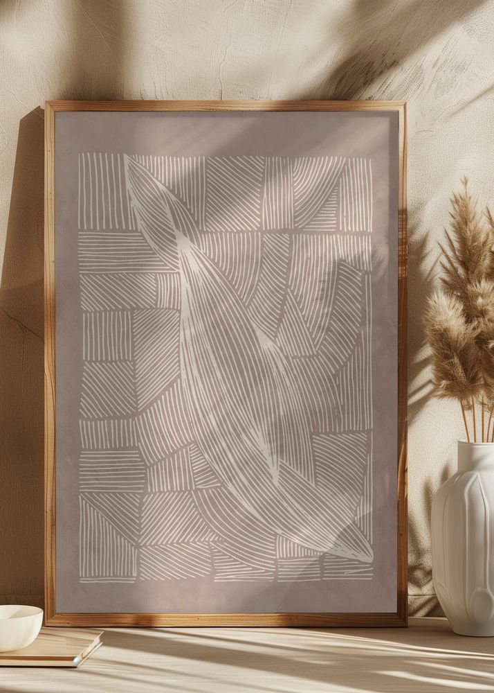 Färgerna i detta print domineras av jordnära toner med en varm beige bakgrund och vita linjer. Denna harmoniska färgkombination framhäver motivets elegans och tillför en lugnande känsla i rummet. Oavsett om du letar efter en distinkt affisch för vardagsrummet eller ett stilrent print för arbetsplatsen, kommer detta motiv att vara ett perfekt val.