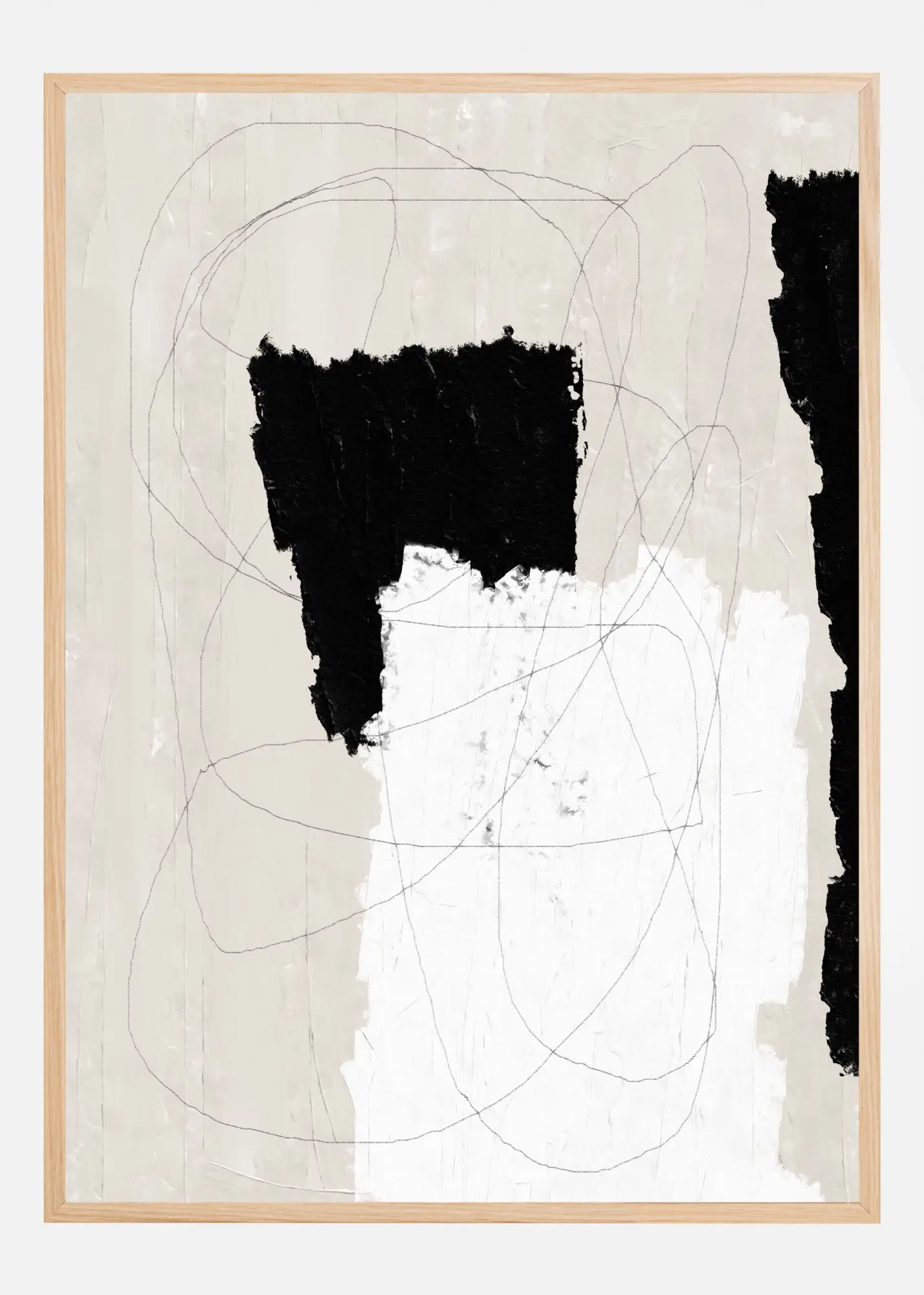 Välj denna affisch för att ge ditt hem eller kontor en konstnärlig touch. Dess neutrala färgpalett med accent av svart mot bakgrunden av mjuka grå toner ger en sofistikerad stil. Perfekt som en central del i ditt vardagsrum eller som en del av en större tavelvägg. Ge liv åt dina väggar med detta unika print och upplev hur samtida konst kan förändra ett rum.