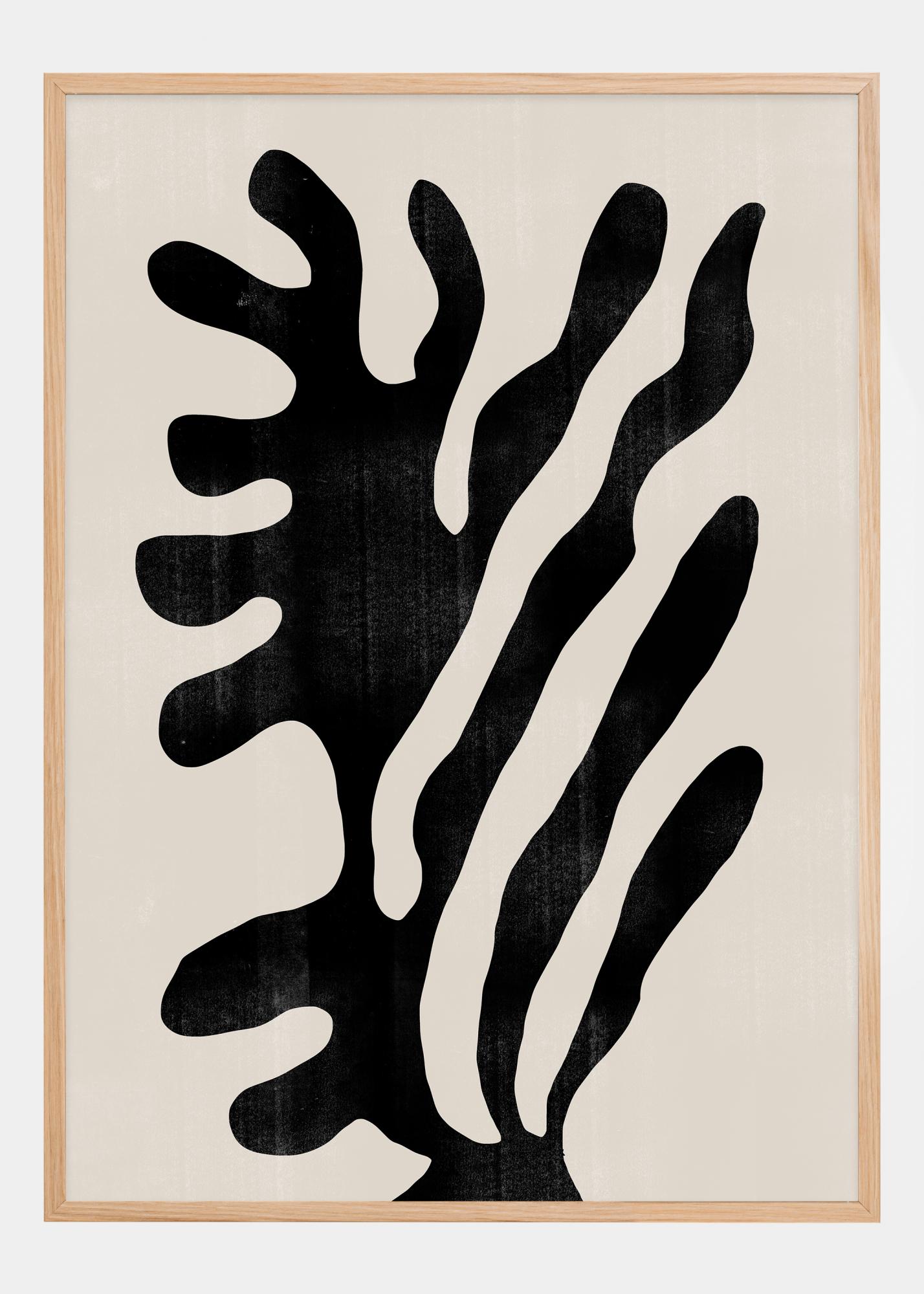 Med ett kraftfullt och abstrakt uttryck, bjuder denna poster in till en tolkning av naturens livskraft. De djärva svarta formerna, som påminner om ett växts blad eller en exotisk blomma, står i kontrast mot den gräddvita bakgrunden och skapar en dynamisk och dramatisk effekt. Detta konstverk fångar den organiska skönheten i naturen genom ett minimalistiskt men djärvt språk.