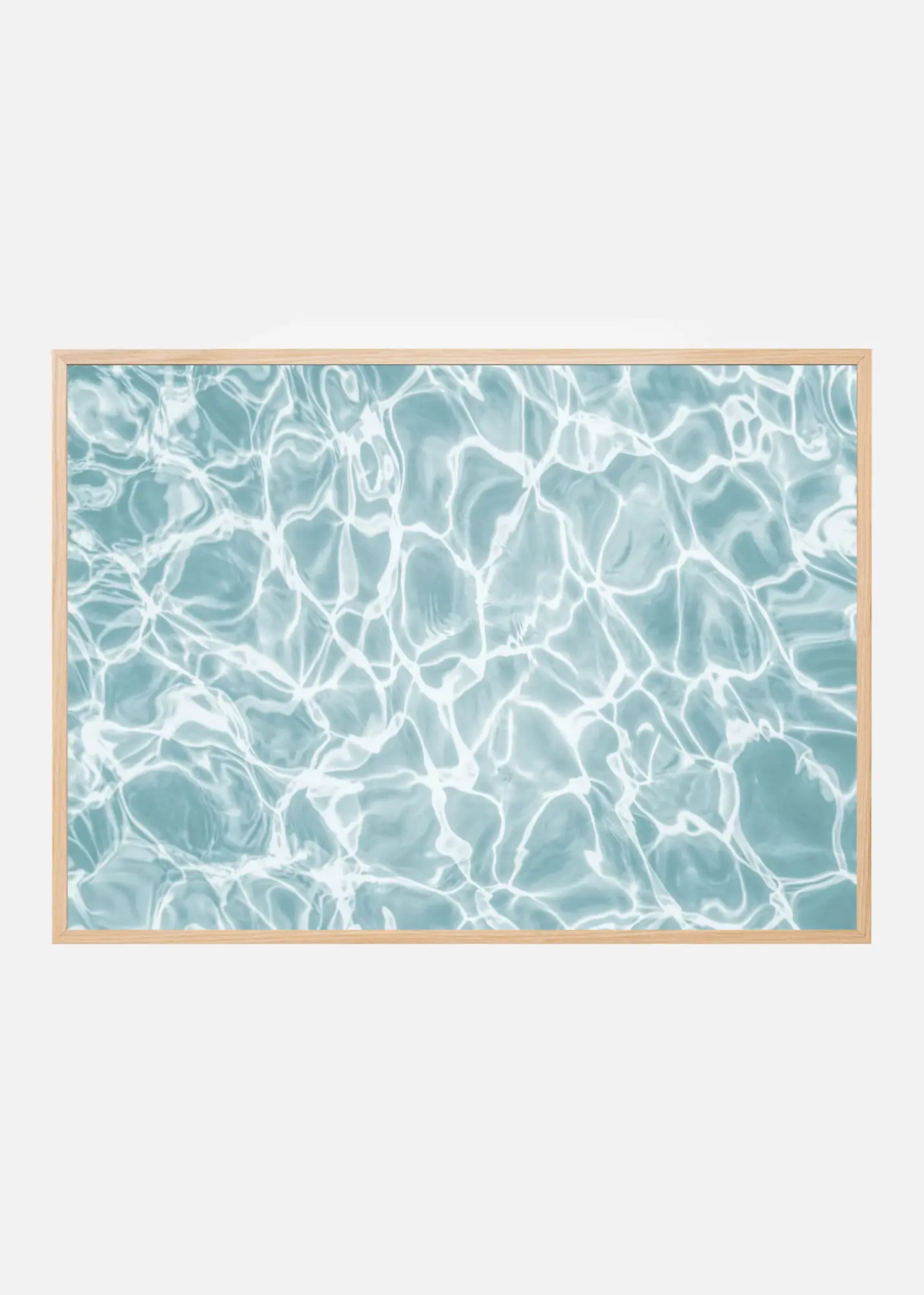 Den här postern fångar den lugnande och fascinerande effekten av reflekterande vatten, där solens strålar skapar ett hypnotiskt mönster över ytan. Med sina mjuka, mestadels turkosa och vita toner, förmedlar denna print en känsla av frid och avslappning. Den är ett perfekt inslag för att skapa en fräsch och modern atmosfär i ditt hem eller kontor.