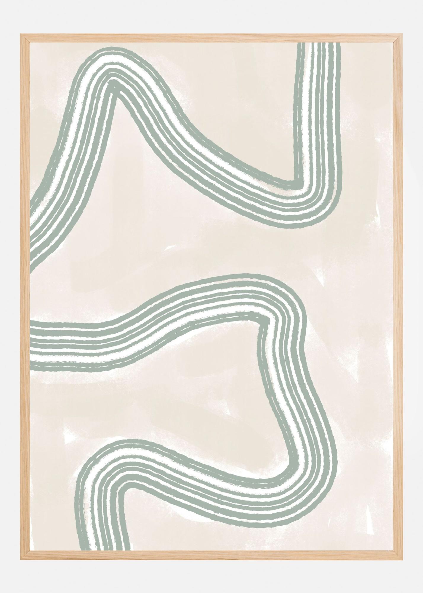 Denna poster visar ett minimalistiskt och abstrakt motiv med mjuka, organiska linjer som elegant slingrar sig över ytan. Det moderna designen skapar en lugn och harmonisk känsla, perfekt för den som vill addera en subtil konstnärlig touch till sitt hem eller kontor. Motivet fungerar utmärkt som en central del i en tavelvägg eller ensamstående som en stilren dekoration.