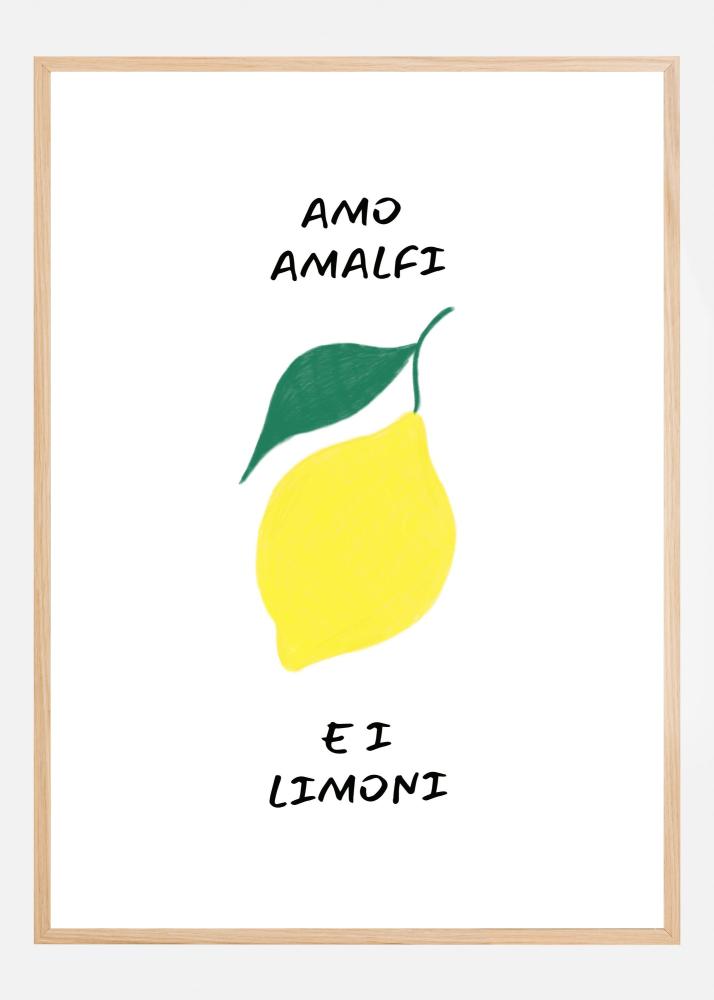 Denna poster fångar essensen av italiensk sommar med sitt färgglada och stilrena motiv. Med orden "Amo Amalfi e i Limoni" i fokus, är detta en hyllning till Amalfikustens skönhet och dess ikoniska citroner. Det enkla men effektfulla designen gör att affischen blir ett stilrent inslag i ditt hem, perfekt för att ge känslan av medelhavets värme och charm.