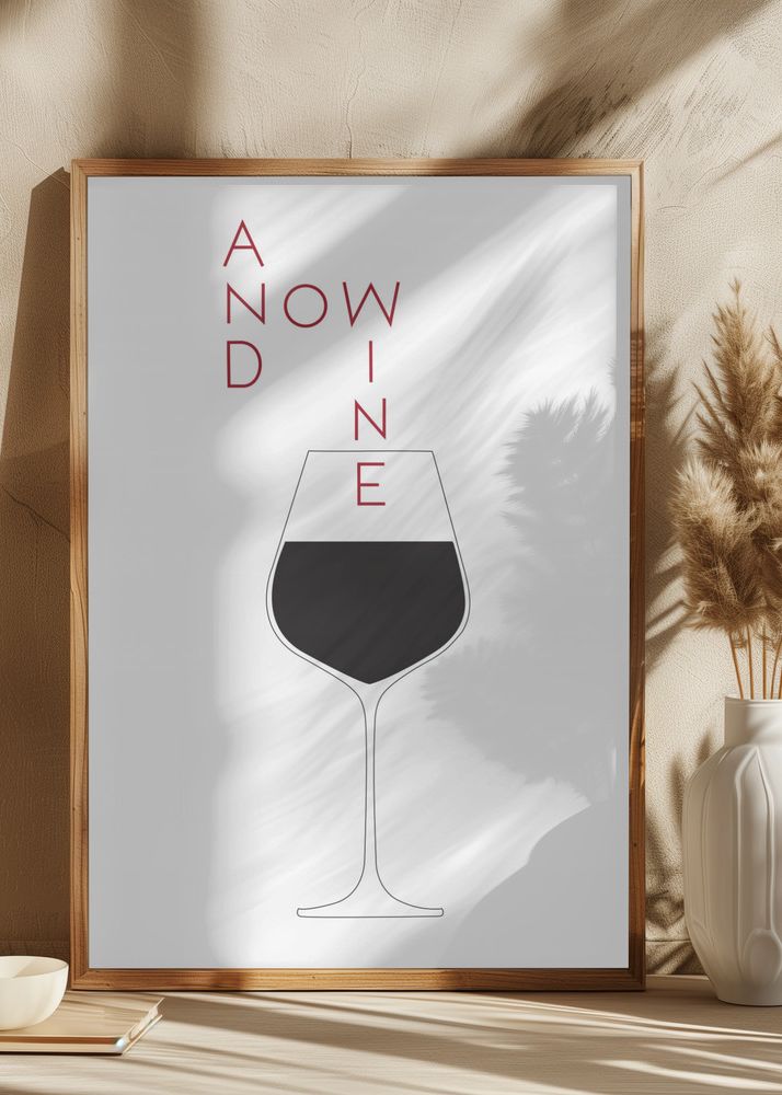 Denna eleganta poster kombinerar modern minimalism med en passion för vin. Motivet föreställer ett stilrent vinglas, enkelt illustrerat för att ge ett modernt och sofistikerat intryck. Texten "AND WINE" är stilfullt placerad i röd färg vilket ger en fin kontrast mot det svartvita glaset. Perfekt för vinälskare eller som en smakfull detalj i köket eller vardagsrummet.
