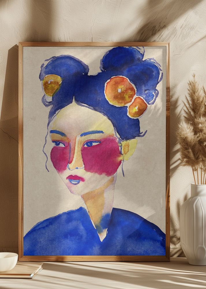 Denna affisch imponerar med sitt unika och konstnärliga motiv av en person med accentuerade ansiktsdrag och uttrycksfull stil. Tilltalande färger som blå, röd, orange och beige dominerar bilden, vilket ger postern en livlig och iögonfallande effekt. Den djärva blandningen av färger gör detta print perfekt för att förnya och ge en modern känsla till vilket rum som helst. Det är en affisch som fångar ögat och inbjuder till reflektion.