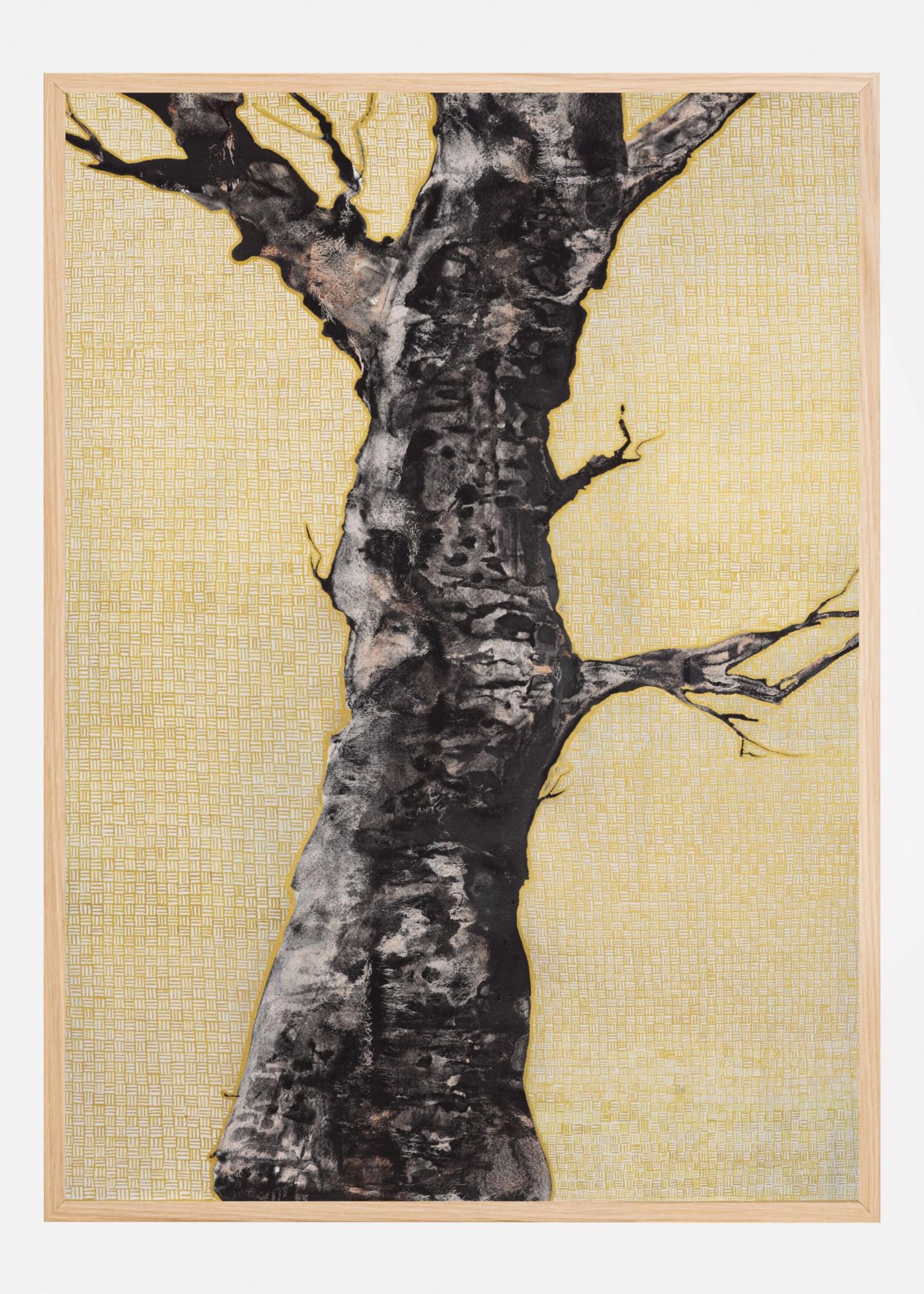 Denna poster visar ett stilistiskt motiv av ett träd med en stark visuell närvaro. Trädet är avbildat med detaljerade svarta och gråa nyanser som står i kontrast mot en varm, gul bakgrund. Den konstnärliga designen ger ett både modernt och organiskt intryck, och kan lätt bli en mittpunkt i vilket rum som helst.