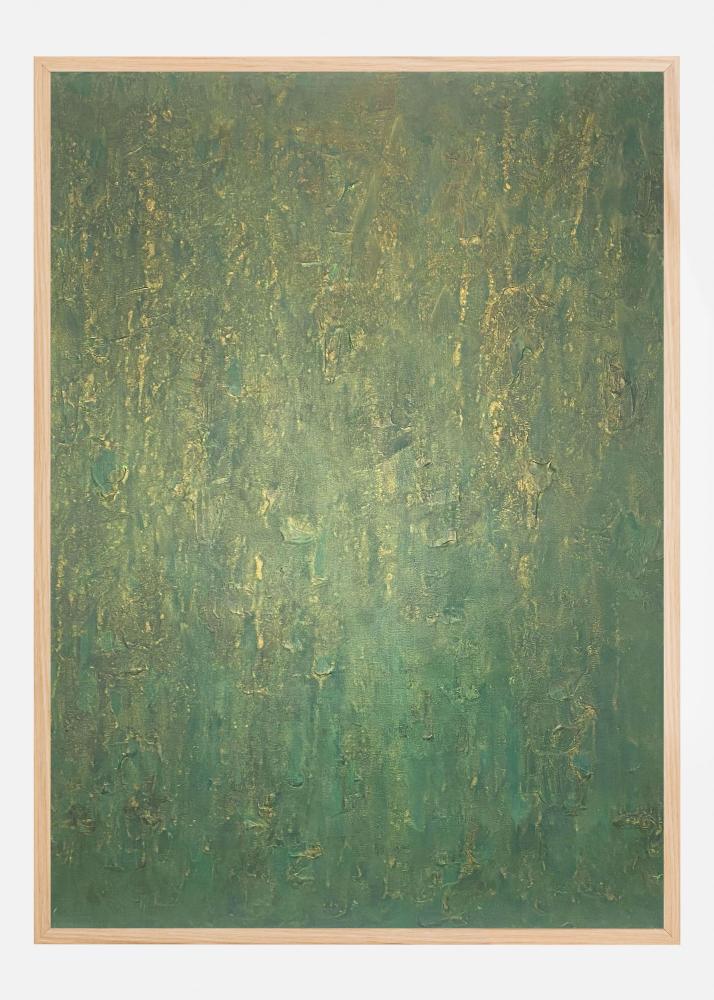 Denna eleganta poster fångar uppmärksamheten med sina djupa gröna och subtila gyllene toner. Den har en sofistikerad och modern estetisk känsla som lätt smälter in i olika typer av inredningar. Den texturerade ytan ger extra dimension och intresse, och dess harmoniska färgpalett gör den till ett perfekt val för dem som söker ett stilrent och lugnande inslag i hemmet.