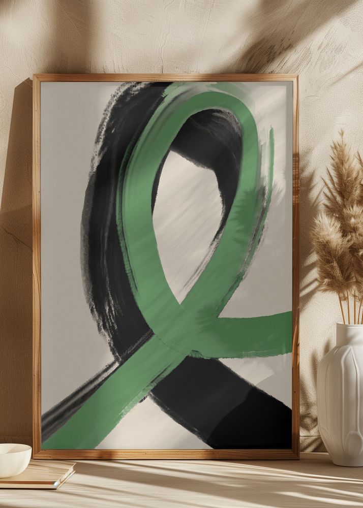 Med sin stilrena och levande design är denna print ett utmärkt val för dig som vill tillföra en touch av konstnärlig elegans till ditt rum. Den harmoniska balansen mellan den svarta och gröna färgen framhävs mot den neutrala bakgrunden, vilket gör denna affisch till en iögonfallande detalj som enkelt kan bli ett centralt stycke i din inredning.
