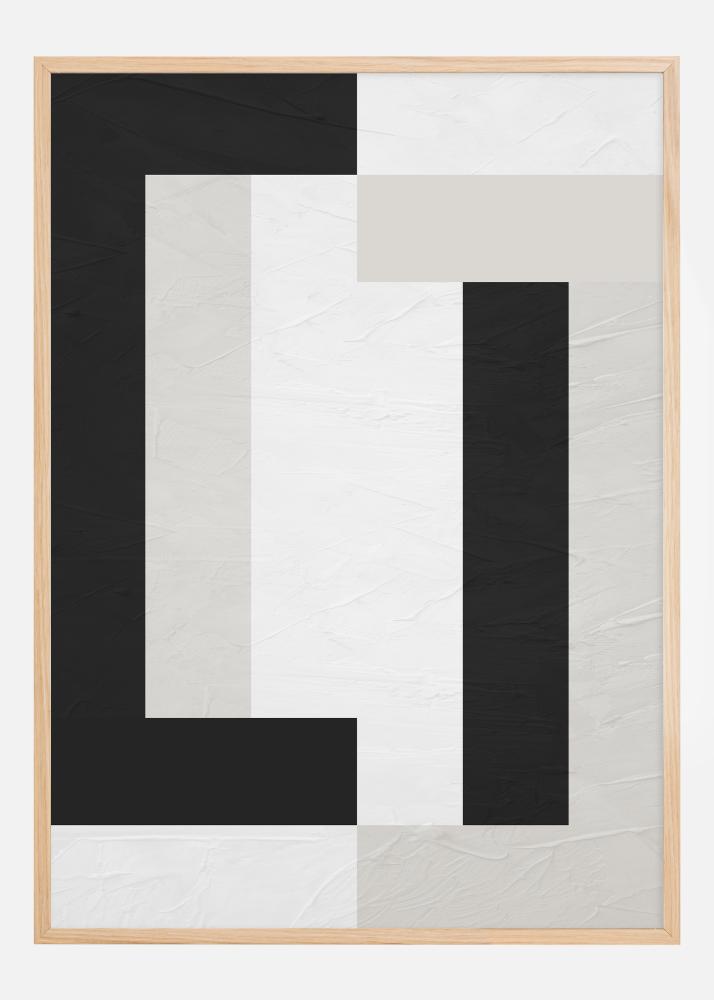 Denna distinkta poster kombinerar enkelheten i modern konst med en djärv geometrisk design. Det kontrasterande spelet mellan svart och vitt är uppdelat i rektangulära block och linjer som tillsammans skapar en föreställning om balans och asymmetri. Idealisk för de som uppskattar starka visuella uttryck, passar denna print perfekt i ett minimalistiskt eller samtida hem. Den erbjuder en stilfull enkelhet som kan bli rummets mittpunkt eller bidra till en större, mer komplex komposition.