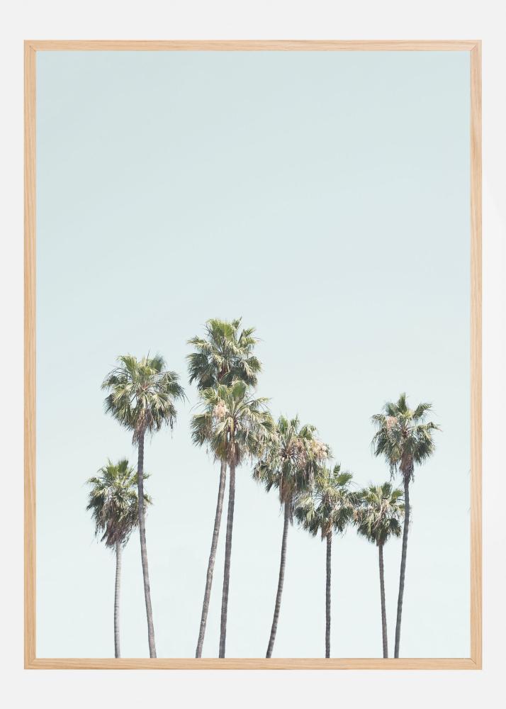 Denna poster fångar essensen av lugn med sina vackra palmer mot en ljusblå himmel. De höga palmerna sträcker sig uppåt och ger en känsla av frihet och naturlig skönhet. Detta print är perfekt för den som vill skapa en avkopplande atmosfär i hemmet eller på kontoret. Affischen framhäver palmernas eleganta konturer vilket skapar en harmonisk balans mellan bildens olika element.