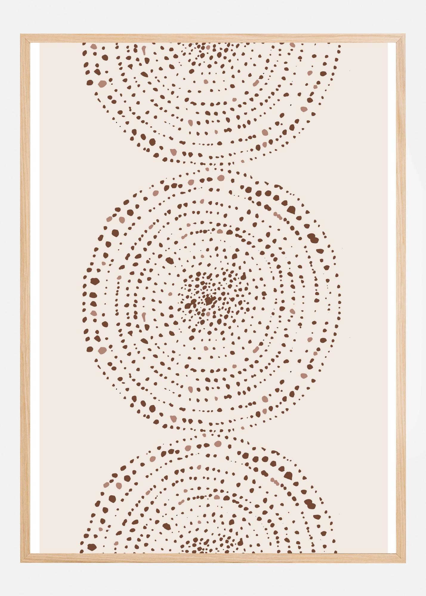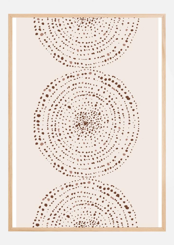 Den här postern har ett elegant och modernt mönster av koncentriska cirklar skapade av små bruna prickar. Detta minimalistiska designval ger en känsla av harmoni och stil, vilket gör printet perfekt för att förnya vilket rum som helst. Affischen passar utmärkt för dem som gillar enkel men iögonfallande konst.