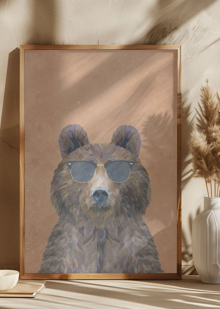 Den här trendiga postern visar en cool björn med solglasögon, perfekt för att ge ditt rum en modern och lekfull stil. Motivet fångar djurets afslappnade attityd och ger en unik karaktär till din vägg. Denna print är idealisk för dig som vill lägga till en touch av humor och personlighet i din inredning.