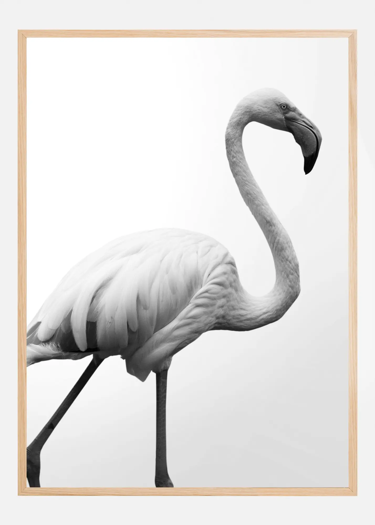 Färgerna i motivet är begränsade till olika nyanser av svart och vitt, vilket framhäver flamingons mjuka former och eleganta silhuett. Denna posters enkla men kraftfulla design gör den till ett mångsidigt tillskott till ditt hem eller kontor. Letar du efter en konstprint som ger ett lugnt och harmoniskt intryck är denna affisch det perfekta valet.