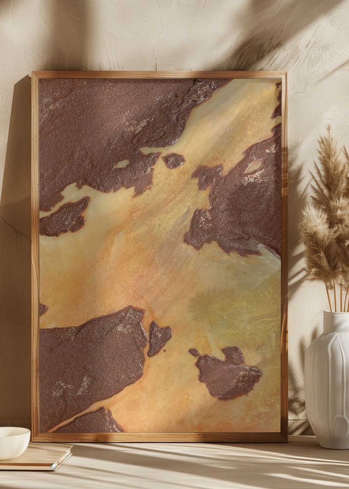 Med en palett som rör sig mellan dämpad brun och skimrande guld, passar denna affisch in i många olika inredningsstilar. Oavsett om du hänger den i vardagsrummet, arbetsrummet eller hallen, blir detta print en iögonfallande och inspirerande del av inredningen. Dess rika färger och textur ger ett konstnärligt uttryck som både är trendigt och tidlöst.
