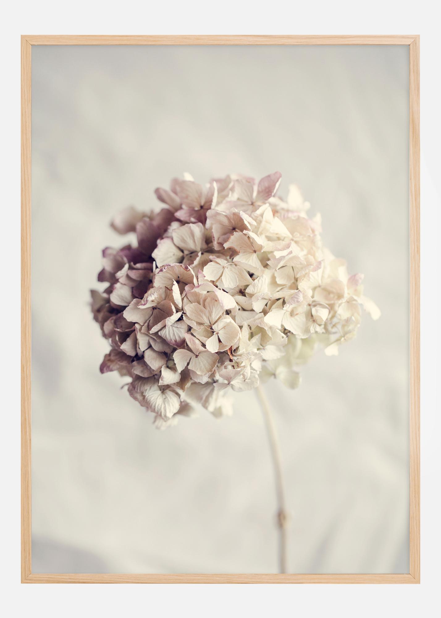 Denna poster presenterar en skör och poetisk bild av en torkad hortensia. Dess subtila färgtoner och den delikata texturen hos blombladen skapar en känsla av nostalgi och tidlös skönhet. Denna print är en hyllning till naturens förgänglighet och skönheten i de övergående ögonblicken som livet erbjuder.