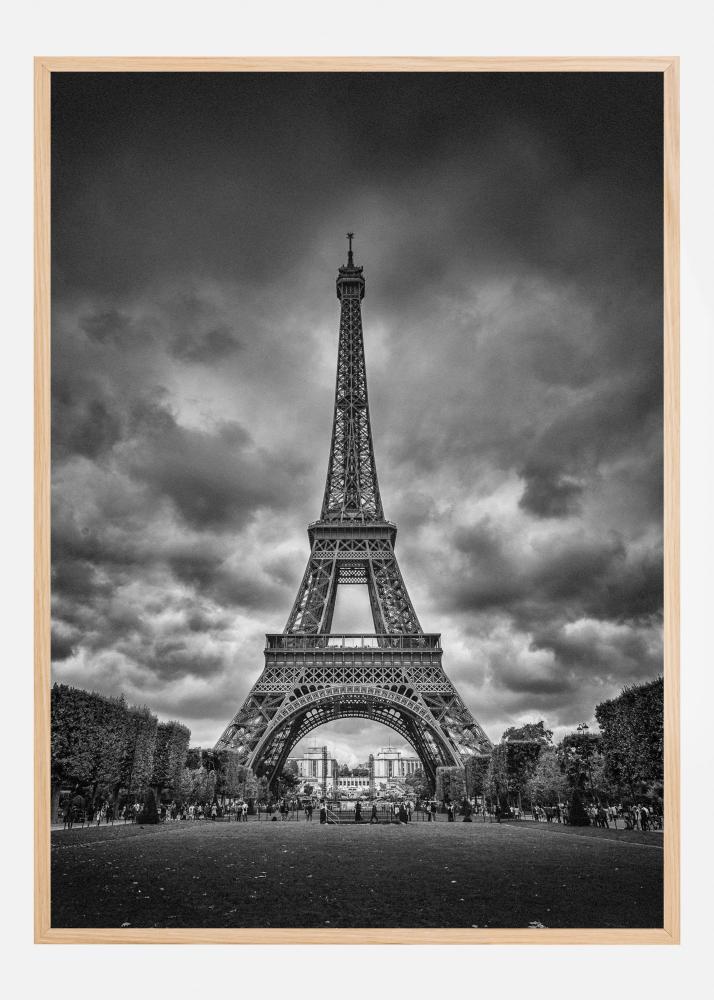 Med sin subtila kontrast mellan olika nyanser av svart och grått, framhäver denna print de dynamiska molnen som ramar in Eiffeltornet. Denna affisch är ett perfekt tillskott för att ge ditt hem en touch av parisisk charm och tidlös elegans. Låt detta konstverk bli centrum för din inredning och inspirera till tankar om resor och äventyr.
