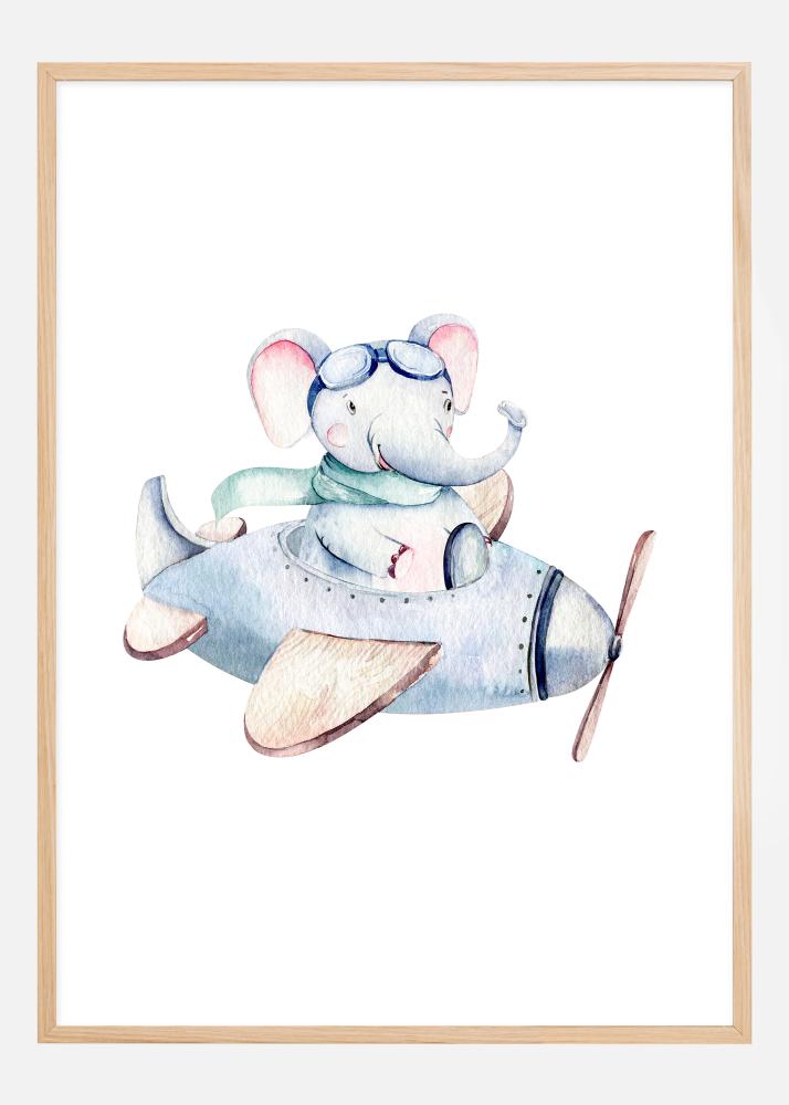 Den svala blå färgen på flygplanet harmoniserar vackert med elefantens grå hudtoner, medan de subtila rosa tonerna i öronen tillför en mjukhet till bilden. Detta är en konstaffisch som lovar att bli en omedelbar favorit i ett barnrum eller spelrum, inspirerande till timmar av kreativ lek och fantasifulla historier. Den är också en sött stilsatt inredningsdetalj som kan fånga och glädja ögat i vilket avslappnat boendeutrymme som helst.