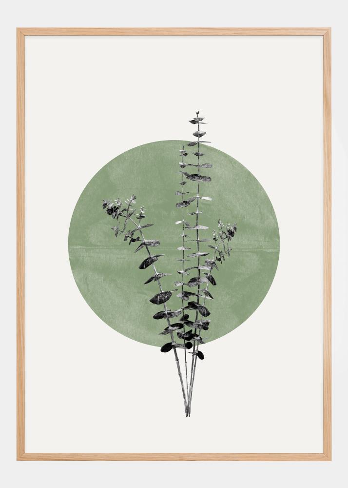 Försköna ditt rum med en poster som skildrar den subtila skönheten hos naturen mot en lugnande grön bakgrund som för tankarna till en måne. Denna affisch framställer eukalyptusens slående silhuett, vars detaljerade blad och grenar känns levande mot den milda gröna cirkeln. Designen hyllar naturens enkla estetik och skapar ett avkopplande inslag i din inredning.