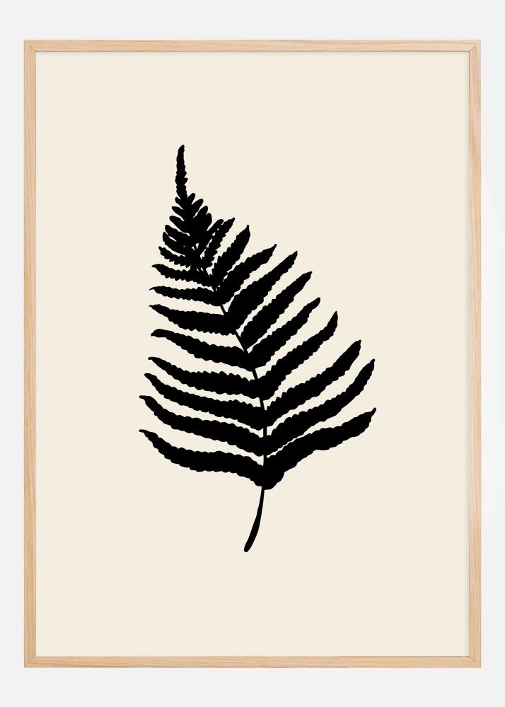 Denna minimalistiska och stilrena poster visar en silhuett av ett ormbunksblad mot en ljus bakgrund, vilket skapar en stark grafisk effekt. Det enkla men ändå uttrycksfulla motivet i svart kontrasterar vackert mot den krämfärgade bakgrunden och ger en organisk känsla till bilden. Denna print är en hyllning till naturens enkla skönhet och dess eviga charm.
