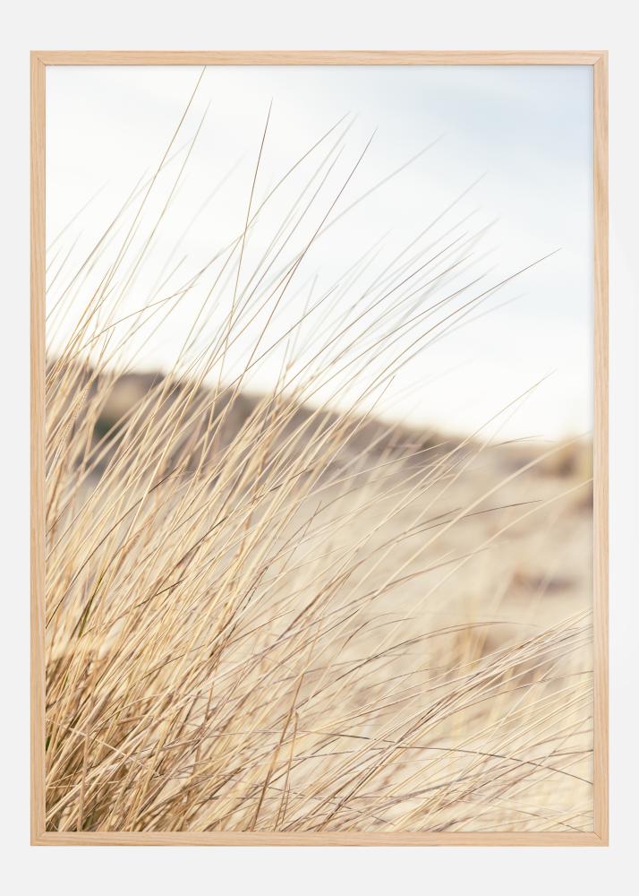 Denna poster avbildar det mjuka och stilla landskapet i ett fält av torrt gräs, där dess naturliga nyanser av beige och brunt blandas mot en diffus bakgrund av mjuka ljusa toner. Den lugnande och naturnära kompositionen inbjuder till reflektion och har en avkopplande effekt, vilket gör den idealisk för rum som avsedda för avslappning och återhämtning.