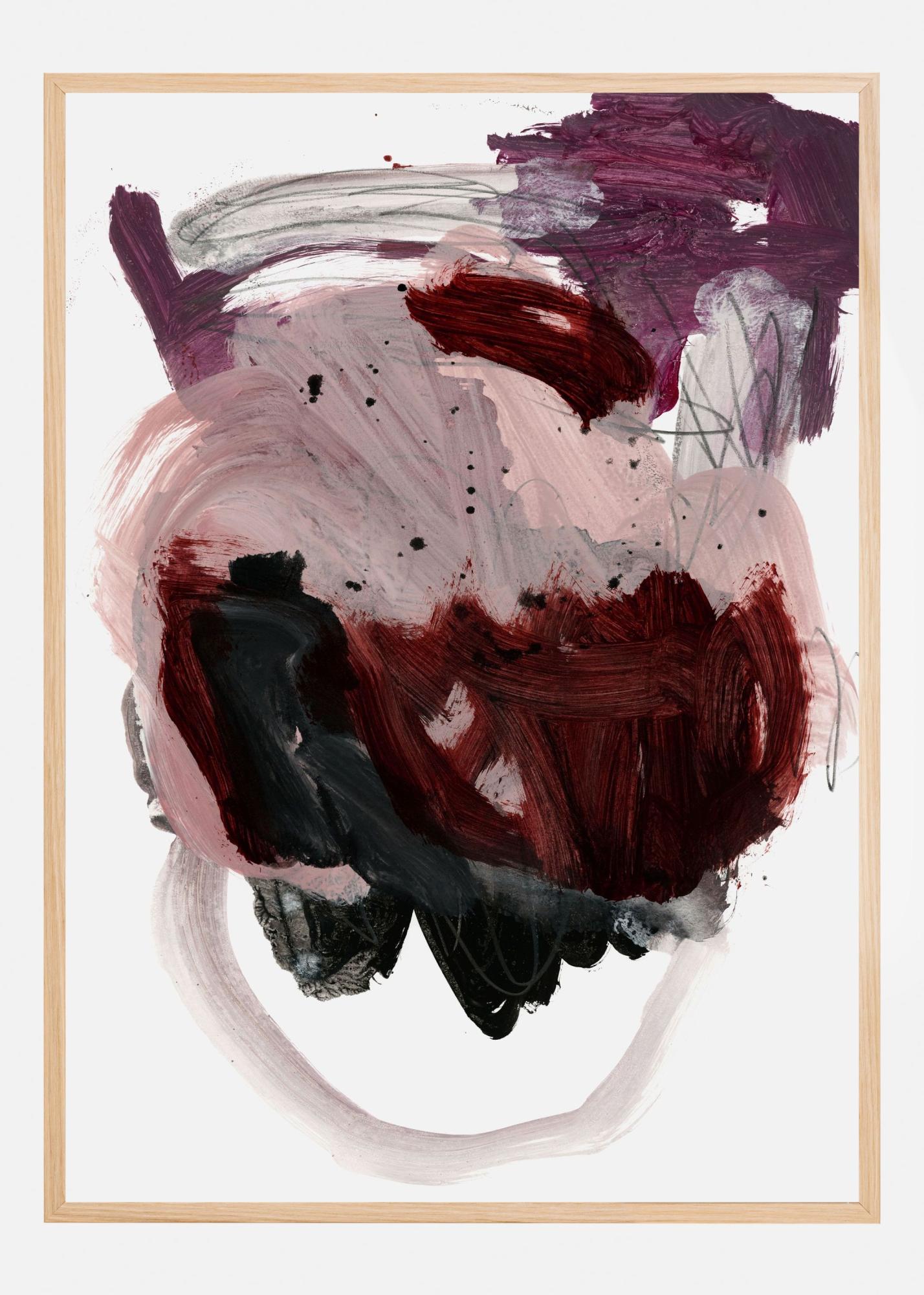 Denna moderna affisch fångar ögat med sina dynamiska penseldrag och kraftfulla färger. Postern innehåller en palett av djupa röda och vinröda toner som kombineras med mjuka rosa nyanser. Lekfulla inslag av svart och grått ger motivet ett dramatiskt och samtidigt sofistikerat uttryck, vilket gör den perfekt för många olika inredningsstilar.