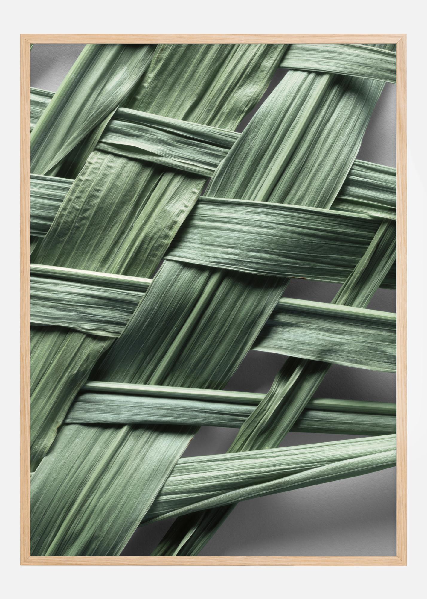 Denna stilrena och naturinspirerade poster visar en detaljrik väv av gröna blad, vars linjer korsar varandra i en organiserad oordning. Den levande gröna färgen och de olika texturerna som framgår av bladen skapar ett lugnande och friskt intryck, vilket bidrar till en känsla av naturens närvaro inomhus.