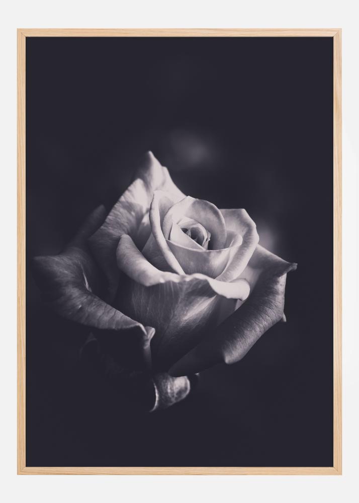 Denna sofistikerade poster fångar essensen av skönhet i sin renaste form med en enda gråskalig ros. Dess kronblad vecklar sig elegant utåt, skapar en symmetrisk och tilltalande form som är både delikat och kraftfull. Bilden är djupt detaljerad, med mjuka övergångar från ljus till skugga som framhäver den naturliga skönheten hos rosens struktur.