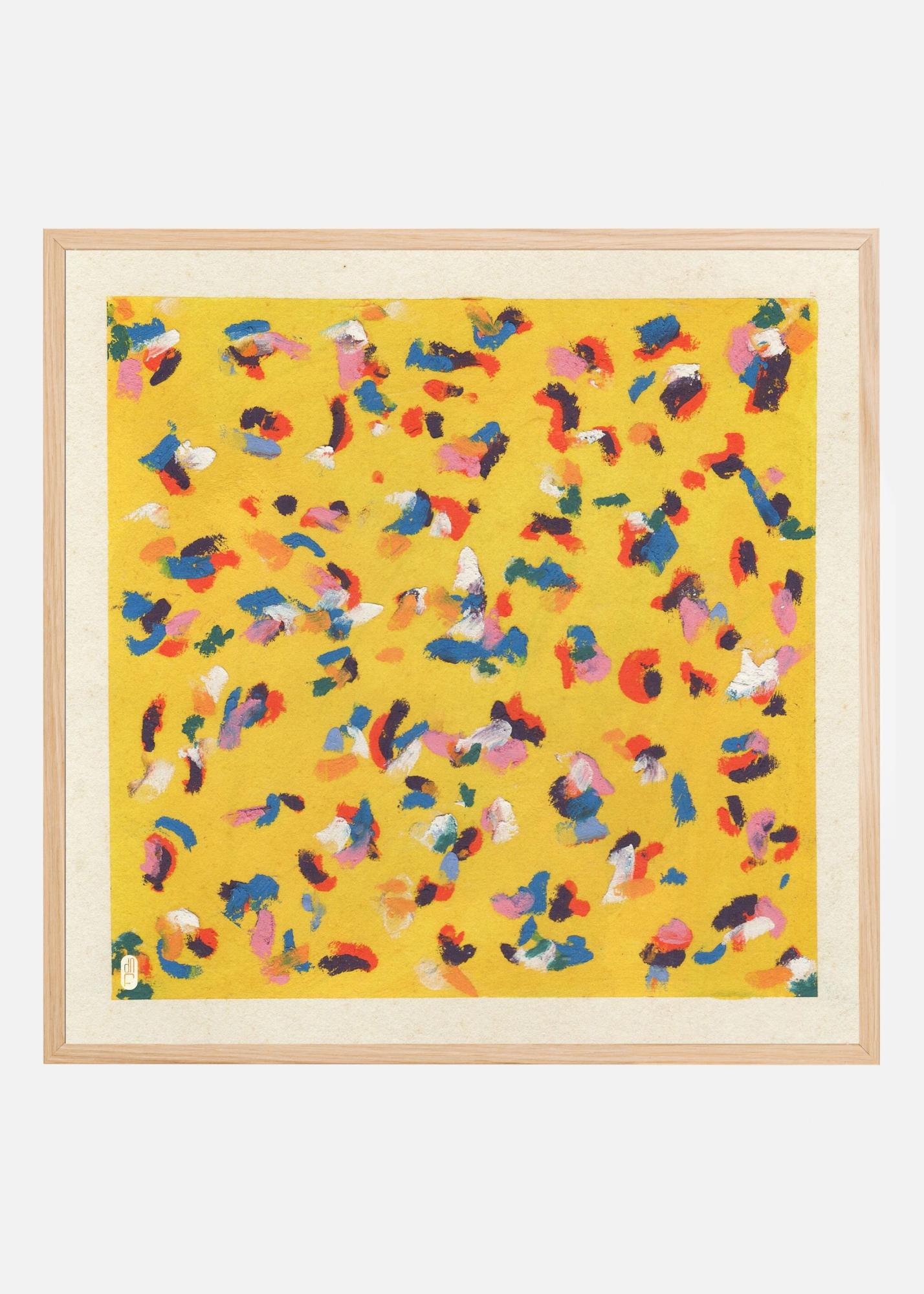 Denna livfulla affisch är ett perfekt tillskott till alla inredningar som söker en pop av färg och energi. Motivet präglas av en rik gul bakgrund som utgör en strålande bas för de lekfulla färgklickarna. Denna poster fångar ögat med en djärv kombination av röda, blå, vita, orange och lila stänk som skapar en dynamisk och modern känsla.