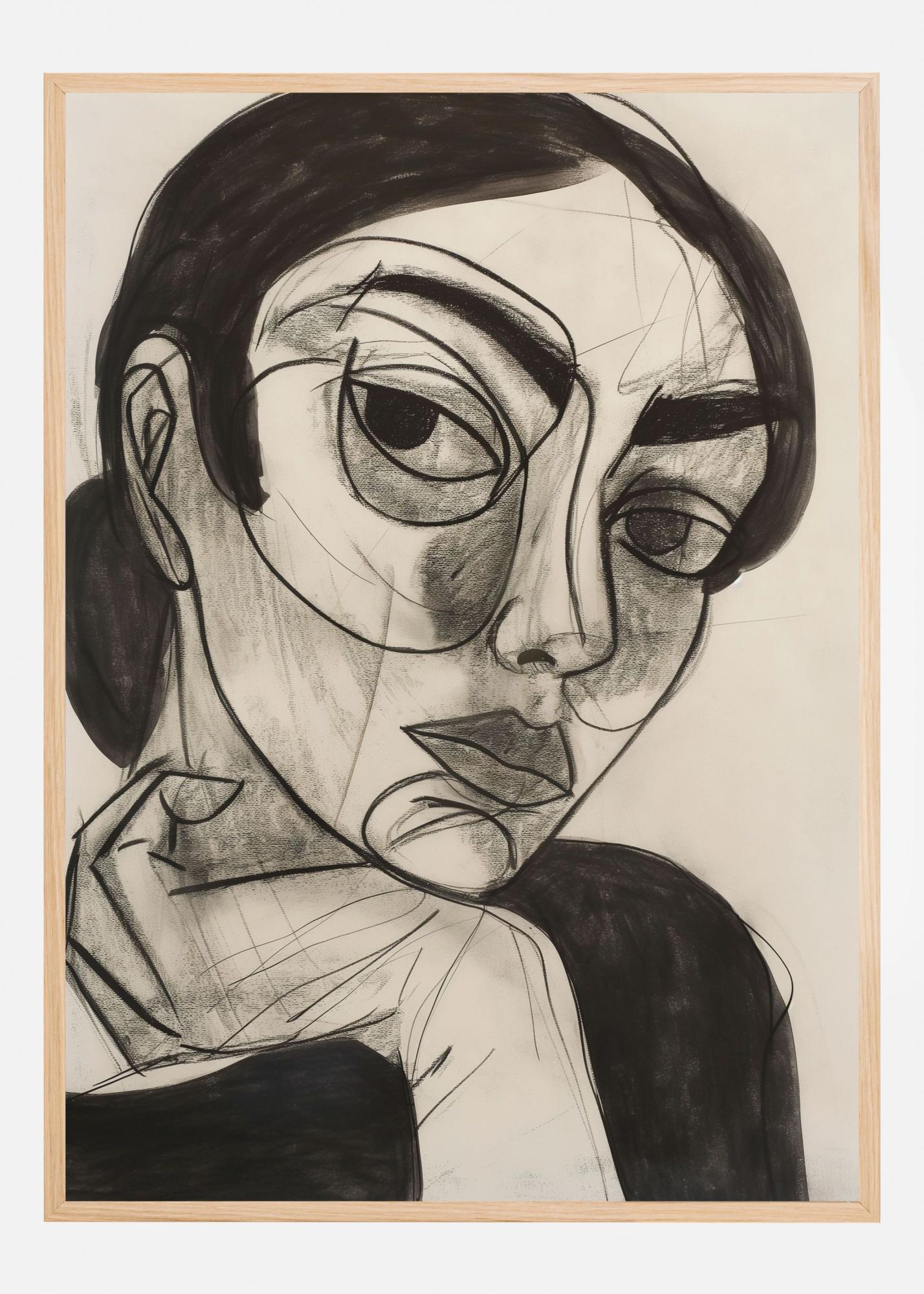 Denna poster utstrålar en kraftfull och djärv estetik med sin grafiska stil och kraftfulla linjer. Motivet visar ett expressivt ansikte i en stil som påminner om modern konst. De starka, svarta linjerna skapar en stark kontrast mot den neutrala bakgrunden och ger affischen en dramatiskt intryck. Perfekt för dig som vill tillföra en touch av konstnärlig elegans till ditt hem eller kontor.
