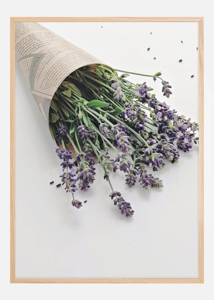 Denna charmiga och lantliga poster fångar essensen av fransk provinsiell estetik med en bukett av lavendel vars doft nästan kan kännas genom bilden. De lila blommorna ligger vackert mot en vit bakgrund och är elegant inlindade i papper med text, vilket ger en vintage-känsla och påminner om en tidig morgon på en blomstermarknad. Detta motiv är perfekt för att ge vilket rum som helst en känsla av lugn och naturlig skönhet, samt för att tillföra en romantisk touch till inredningen.