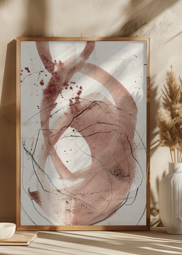Färgpaletten i denna affisch består av varma nyanser av rödbrunt och svart, som harmoniserar elegant mot en ljus beige bakgrund. Kombinationen av dessa färger ger en sofistikerad och rustik känsla som enkelt kan integreras i olika rum. Perfekt för dig som söker en affisch som fungerar som både en konstnärlig och trendig inredningsdetalj.