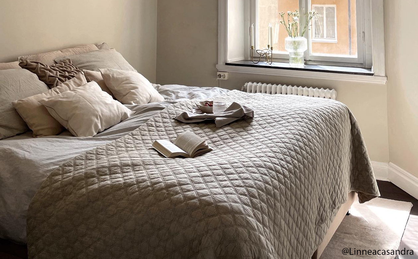 Sovrummet, och speciellt sängen betyder för många vila och återhämtning. Det är viktigt att få sovrummet att kännas ombonat och inbjudande för en chans till avslappning. Att ta sig tiden och bädda sängen är faktiskt väl investerad tid. Att lägga lite tid på en bäddad säng gör att det kommer kännas lite lyxigare att gå och lägga sig på kvällen, som att sova på hotell. När du ska göra en fin bäddning kan du jobba med flera olika lager innan du avslutar med ett snyggt överkast. Att jobba med flera lager skapar en bäddning utöver det extra. Det kan också vara roligt i ett sovrum att utgå från andra textilier och hålla sig inom samma färgskala. Välj ett överkast som matchar fint med ditt påslakanset, köp till en gosig pläd och fina prydnadskuddar för att verkligen få till den där lyxiga hotellkänslan i ditt eget sovrum.