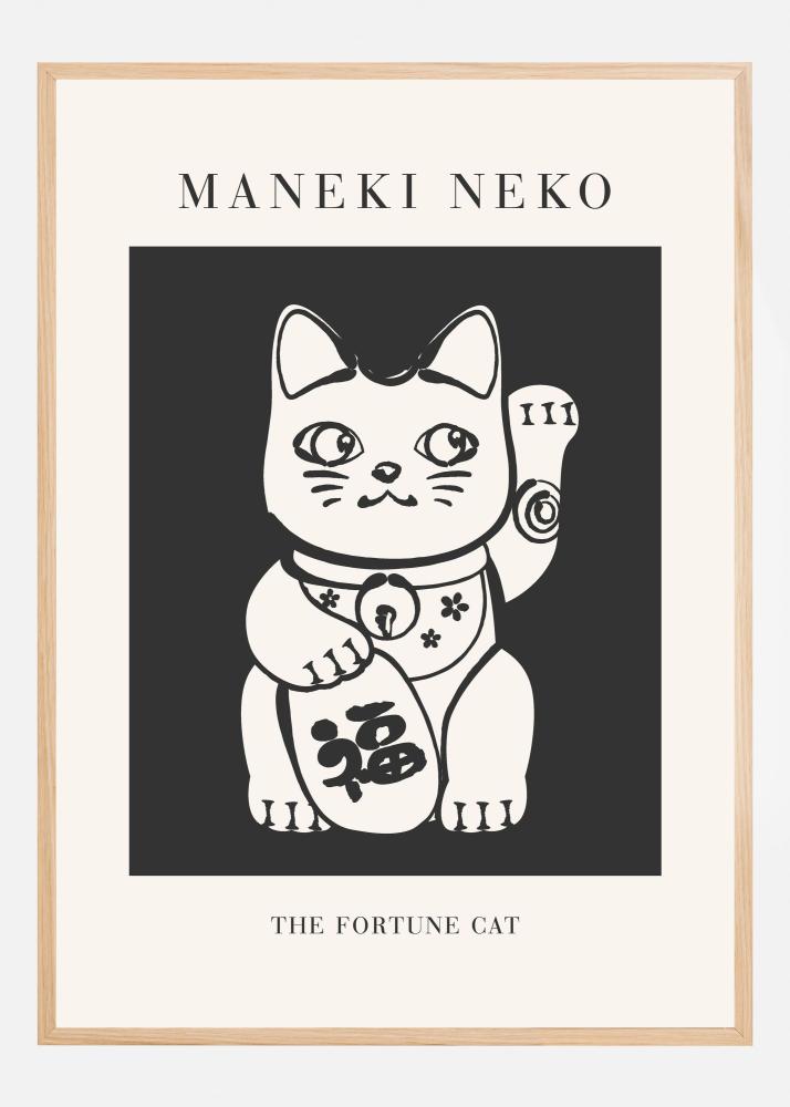 Denna poster avbildar den ikoniska Maneki Neko, även känd som "The Fortune Cat." Med en stilren och minimalistisk design fångar denna affisch den tidlösa symbolen för lycka och välstånd. Den iögonfallande katten håller sin tass högt i en inbjudande gest, vilket ger en känsla av välkomnande och tur till varje rum. Placera denna print i ditt hem eller kontor för att skapa en positiv och inbjudande atmosfär.