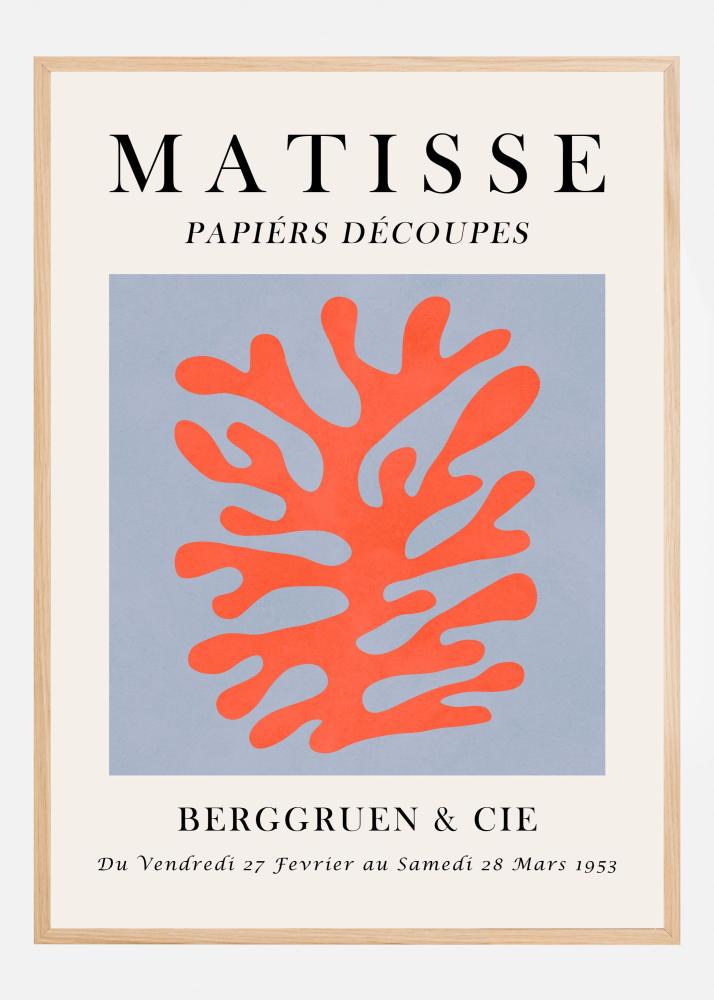 Utforska konstnärlig elegans med denna stilfulla affisch. Postern visar en ikonisk design inspirerad av Matisse, där livfulla organiska former flyter mot en lugnande bakgrundston. De varma röda nyanserna kontrasterar vackert mot en djup gråblå bakgrund, vilket skapar en visuell harmoni som ger ett modernt och sofistikerat intryck. Denna print är perfekt för att ge ditt hem en touch av kultiverad charm.