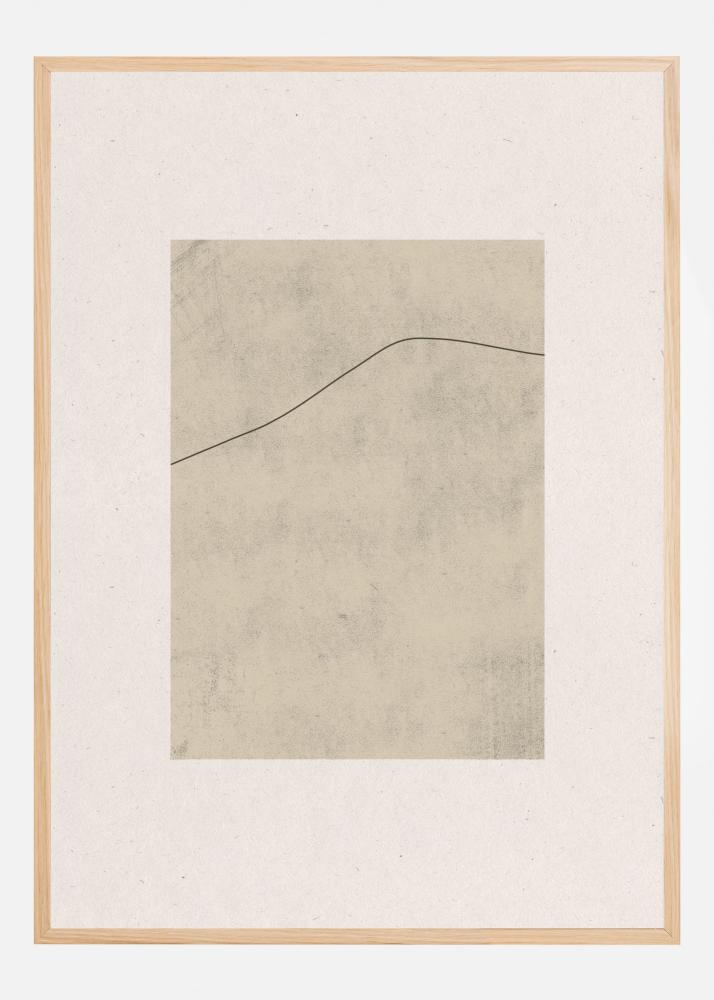 Denna eleganta poster framhäver ett minimalistiskt landskapsmotiv där en mjukt böljande linje sträcker sig över en neutral bakgrund. Designen skapar en känsla av stillhet och enkelhet, vilket gör den perfekt för att komplettera en modern inredning. Mönstret på denna affisch är diskret men ändå uttrycksfullt, vilket gör den till ett mångsidigt dekoralternativ.