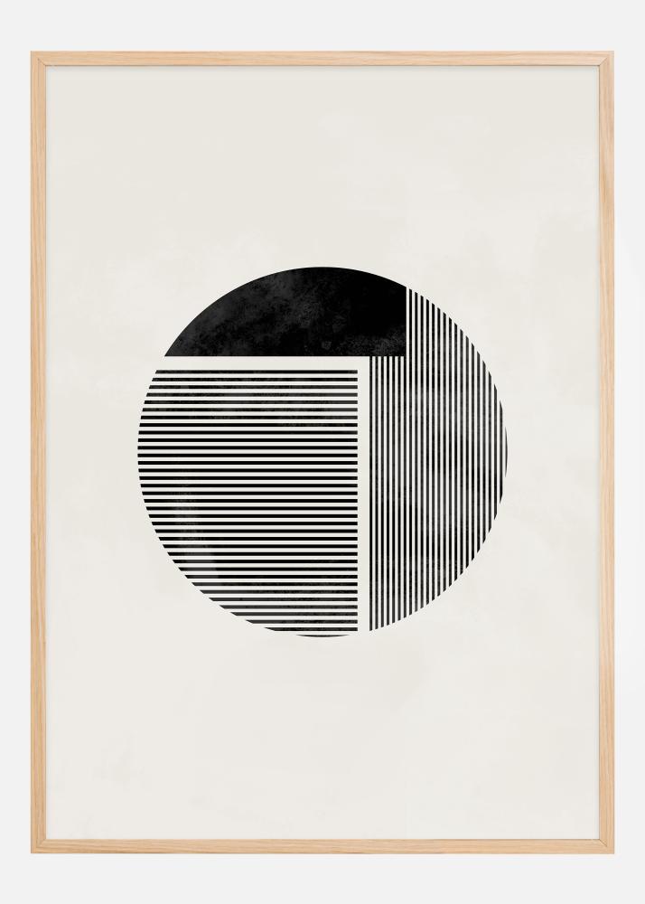 Denna eleganta och minimalistiska affisch är en studie i kontrast och enkelhet, som visar en halvcirkel delad i svart och vitt med strimmiga mönster. Det abstrakta motivet är en omsorgsfullt balanserad komposition av geometriska former och linjer, vilket skapar en omedelbar visuell effekt. Detta konstverk är en hyllning till det subtila och sofistikerade, och erbjuder en tidlös estetik som passar i alla moderna hem eller kontor.