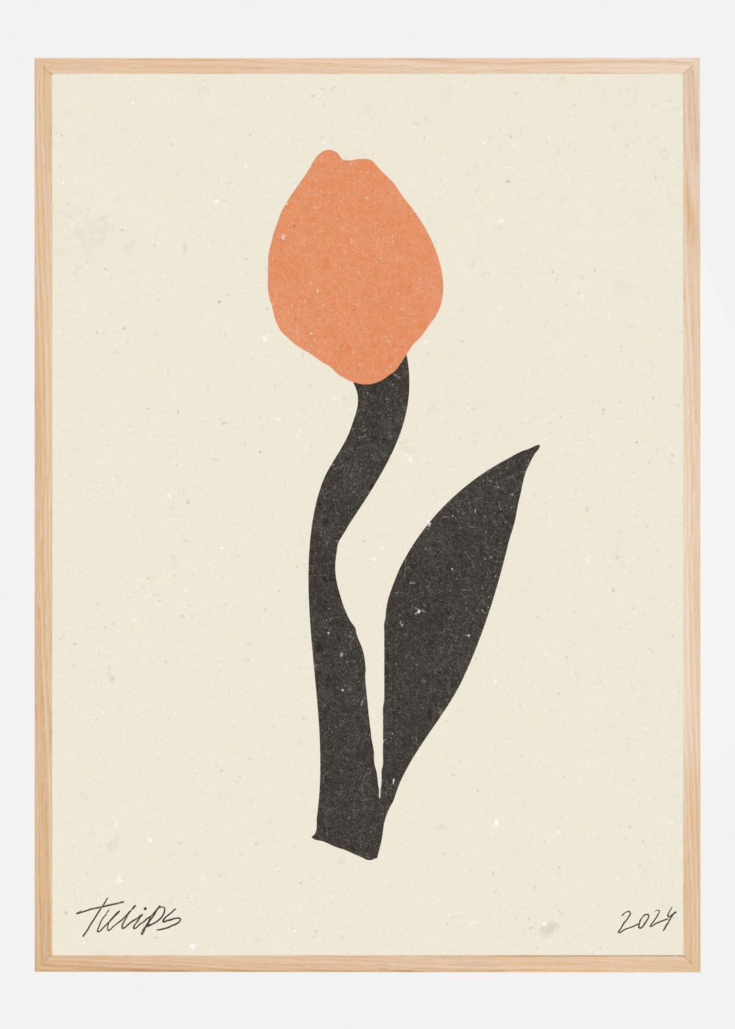Denna poster visar en stilren och modern illustration av en tulpan som fångar ögats intresse med sin minimalistiska design. Tulpanens blommor är i en varm orange ton, medan stjälken och bladen presenteras i en djup svart nyans. Motivet ger en tidlös känsla som passar utmärkt i olika inredningsstilar och lyfter ditt rum med en stilfull elegans.