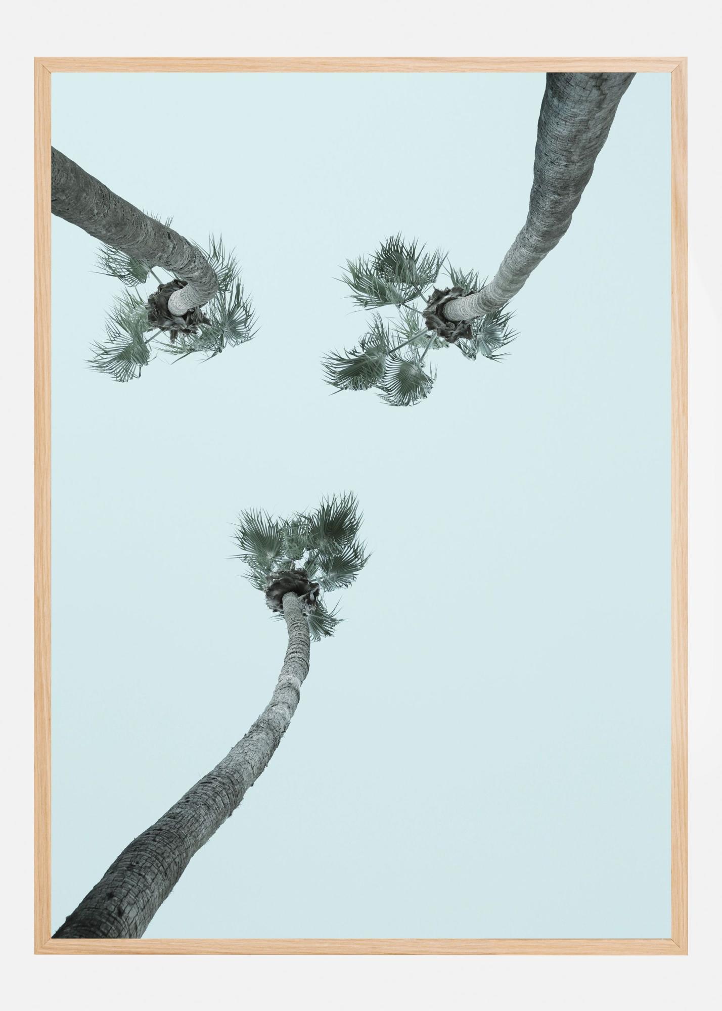 Denna poster fångar den lugnande skönheten av höga palmer mot en klar himmel. Perspektivet från marken uppåt ger en känsla av oändlighet och frihet, perfekt för att skapa en avkopplande atmosfär i vilket rum som helst. Denna affisch passar utmärkt för både modern och klassisk inredning och fungerar som en stilren inredningsdetalj.