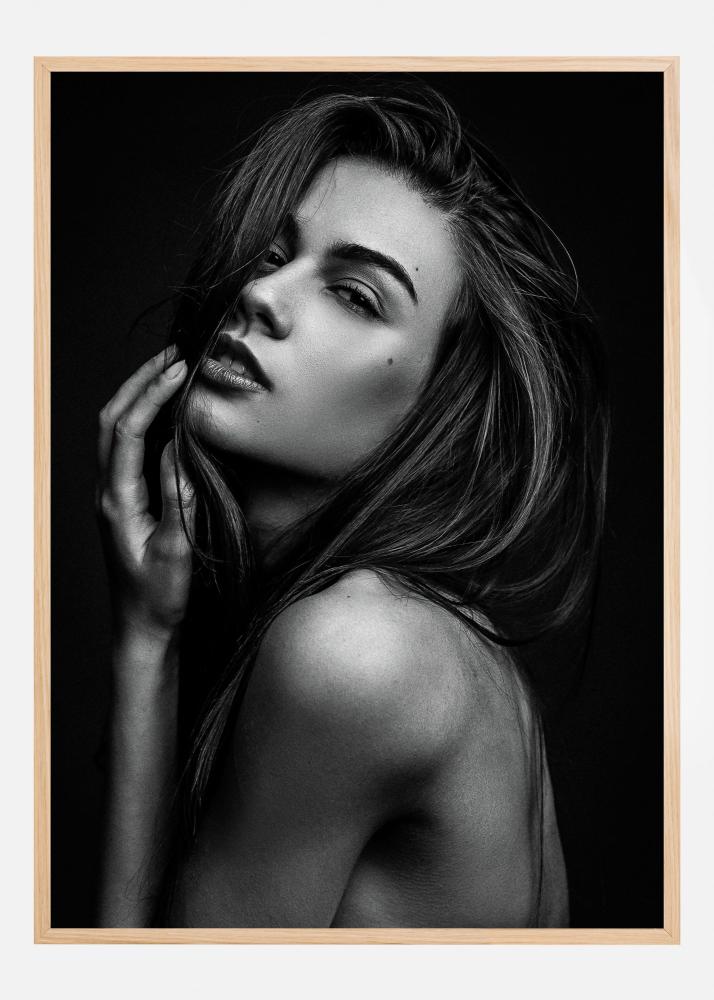 Denna stilrena affisch fångar en tidlös känsla med ett elegant svartvitt porträtt. Det minimalistiska uttrycket gör postern till ett perfekt val för den som söker en modern och sofistikerad inredningsdetalj. Motivet består av en noggrant komponerad bild där ljuset och skuggorna lyfter fram detaljernas skönhet, vilket ger rummet en känsla av djup och stämning.