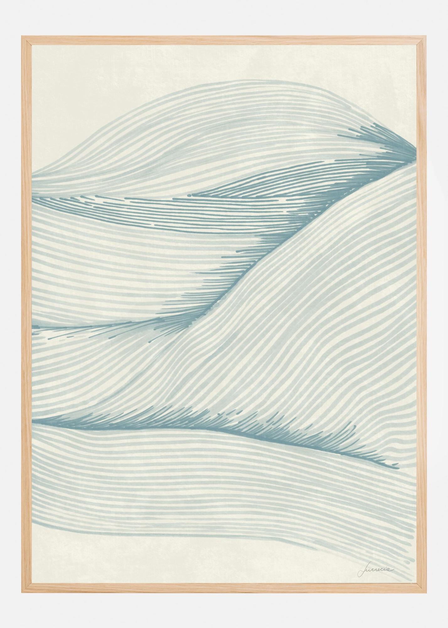 Den här stilrena postern fångar essensen av harmoniska linjer och naturens skönhet. Motivet består av böljande linjer som liknar mjuka sanddyner eller havets vågor, vilket ger ett lugnande och tidlöst intryck. Perfekt för att skapa en avslappnad atmosfär i vilket rum som helst, fungerar denna print utmärkt i vardagsrum, sovrum eller kontor.