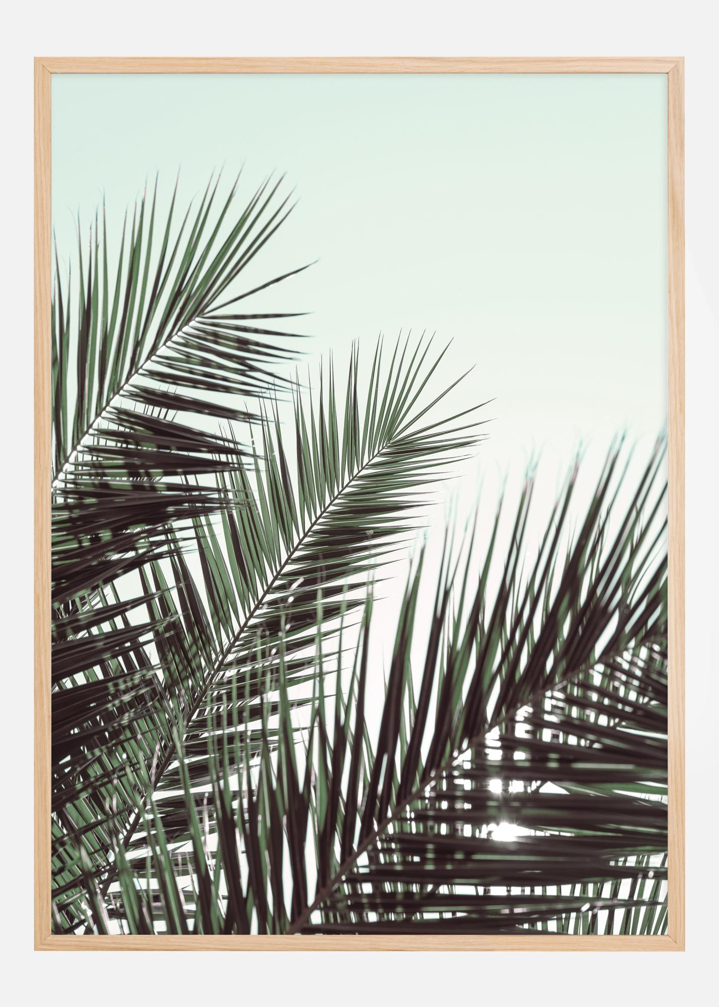Förvandla ditt hem till en tropisk oas med denna sofistikerade poster som avbildar frodiga palmblad mot en pastellfärgad himmel. Den här affischen fångar den lätta brisen och det lugna som endast kan återfinnas i ett varmt klimat. De detaljerade gröna bladen är vackert framställda mot en mjuk himmelsblå bakgrund, vilket skapar en känsla av evig sommar och natur i ditt utrymme.