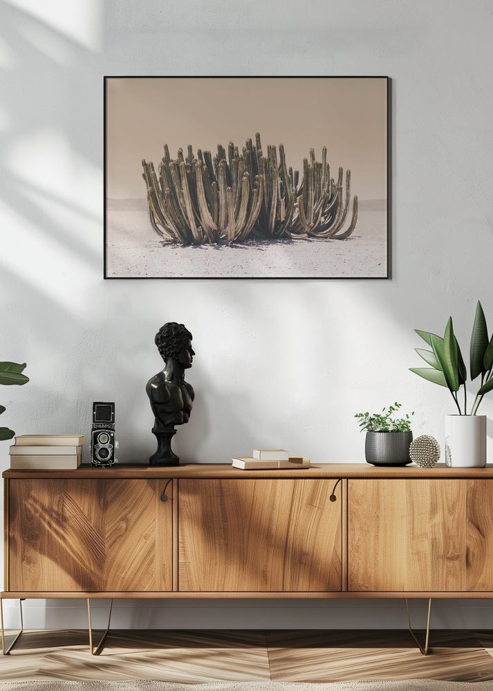 Färgerna i postern är noggrant utvalda för att harmonisera med olika inredningsstilar. Här finner du varma nyanser av beige och sand i bakgrunden, som elegant kontrasteras av kaktusens djupa gröna toner. Dessa färger skapar en lugn och naturlig känsla, vilket gör den enkel att matcha med andra dekorationer. Perfekt för vardagsrum, sovrum eller arbetsrum som behöver en pigg uppdatering med ett naturnära print.