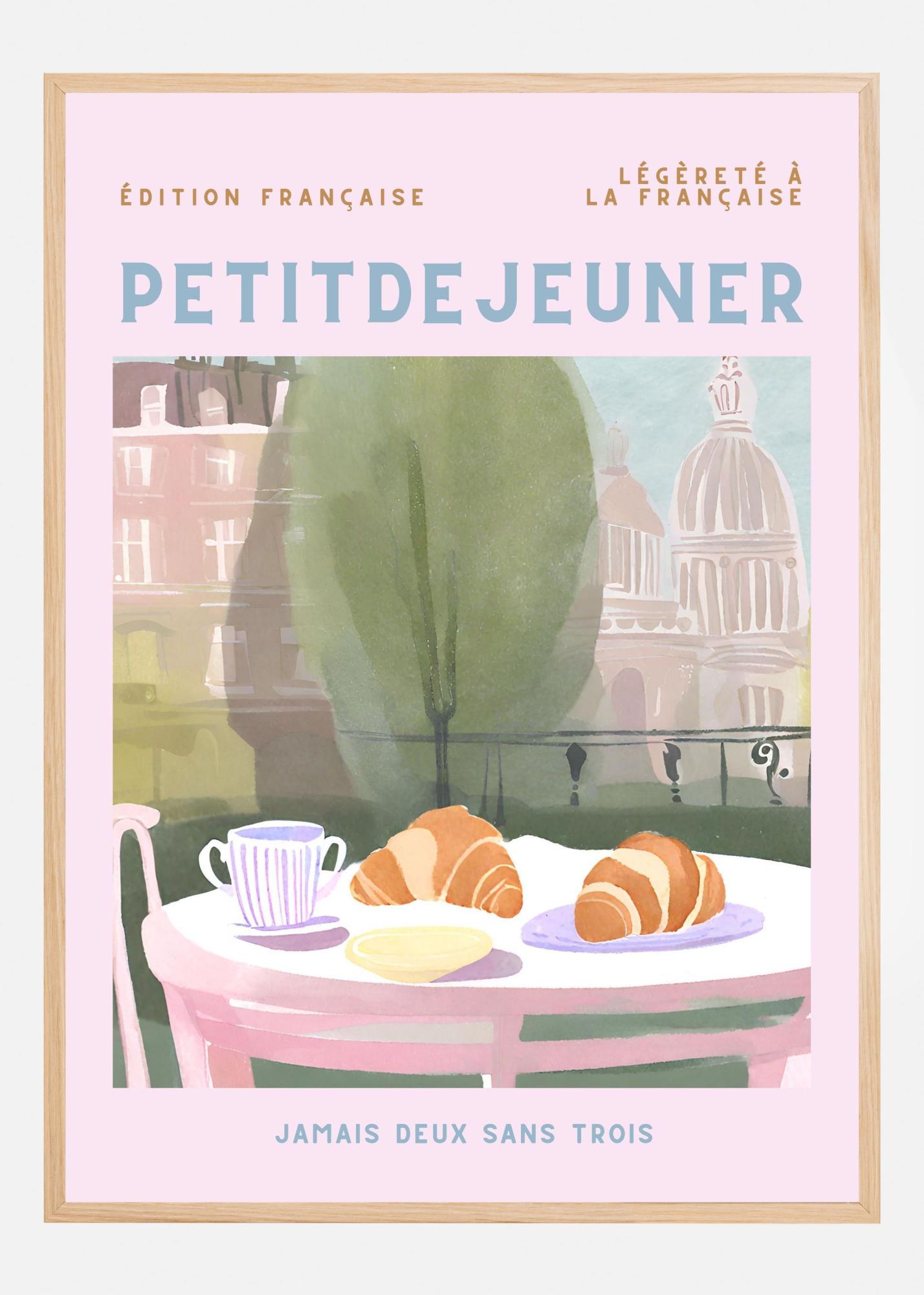 Denna stilfulla poster fångar det lugna ögonblicket av en fransk frukost, och ger en känsla av "légèreté à la française". Med sina mjuka pastellfärger och charmiga detaljer, erbjuder detta print en inblick i fransk kultur. Texten "Petite Dejeuner" skriven i klassisk serif-stil förstärker den eleganta atmosfären.