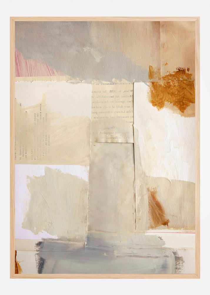 Denna unika poster fångar essensen av modern konst med sin subtila färgpalett och sofistikerade collage-teknik. Motivet består av flera lager av pappersbitar i skiftande toner, vilket ger en djup och dynamisk känsla. Den abstrakta designen fungerar perfekt som ett stilrent inslag i ditt hem eller kontor, och drar ögat med sina kontrasterande texturer och nyanser. En perfekt print för den som söker något unikt och konstnärligt.