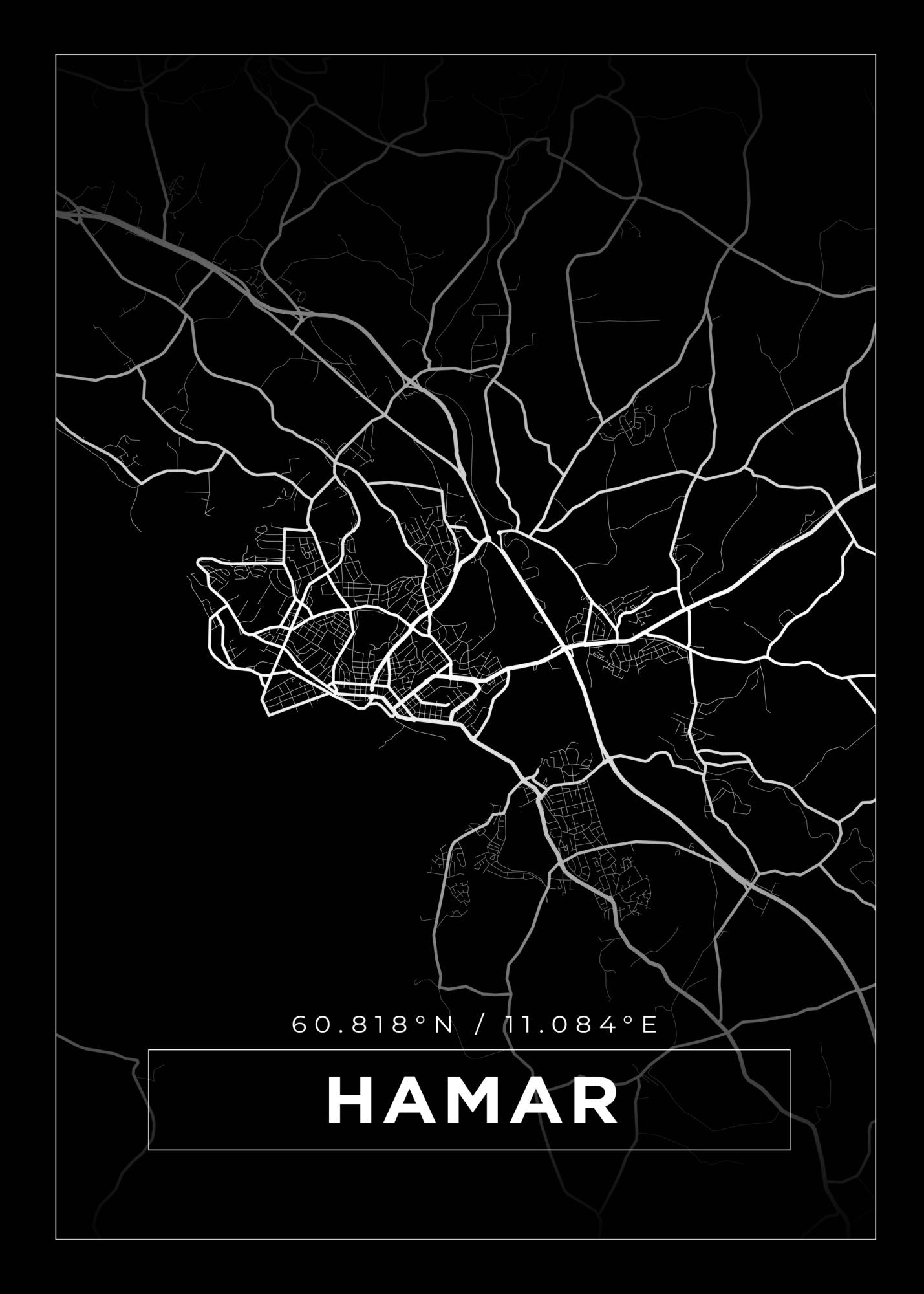 Karta - Hamar - Svart Poster