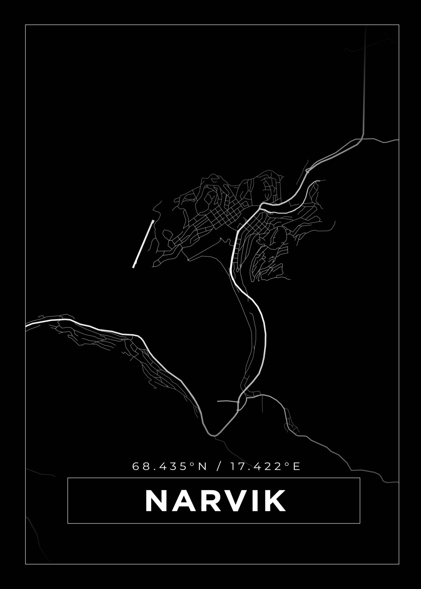 Karta - Narvik - Svart Poster
